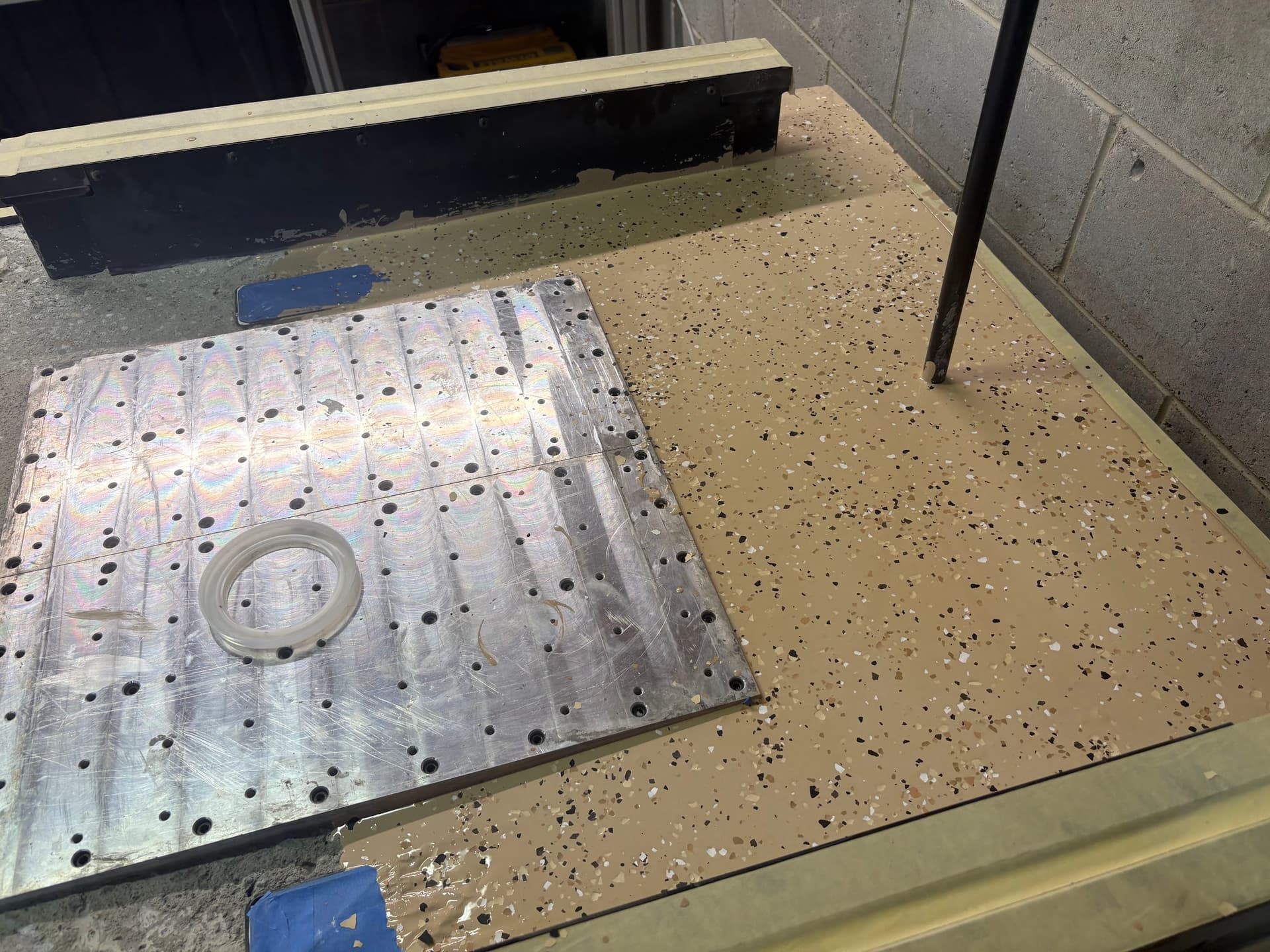 Contoured the concrete and then did a two-part epoxy pour, re-sloping the machine for each half for better coolant flow to drains. I didn’t see what some of y’all were doing with the shower drains until too late…wishing I had done that.