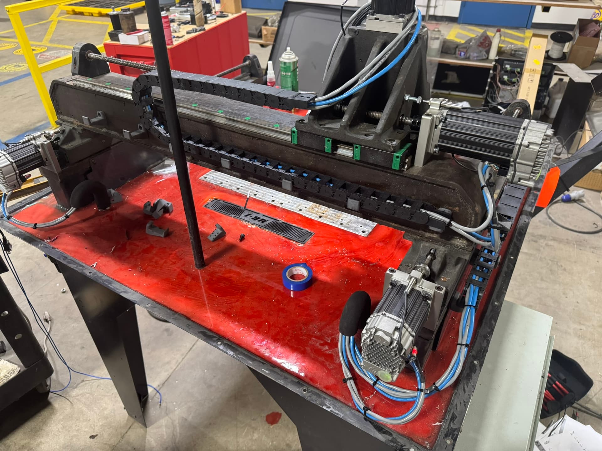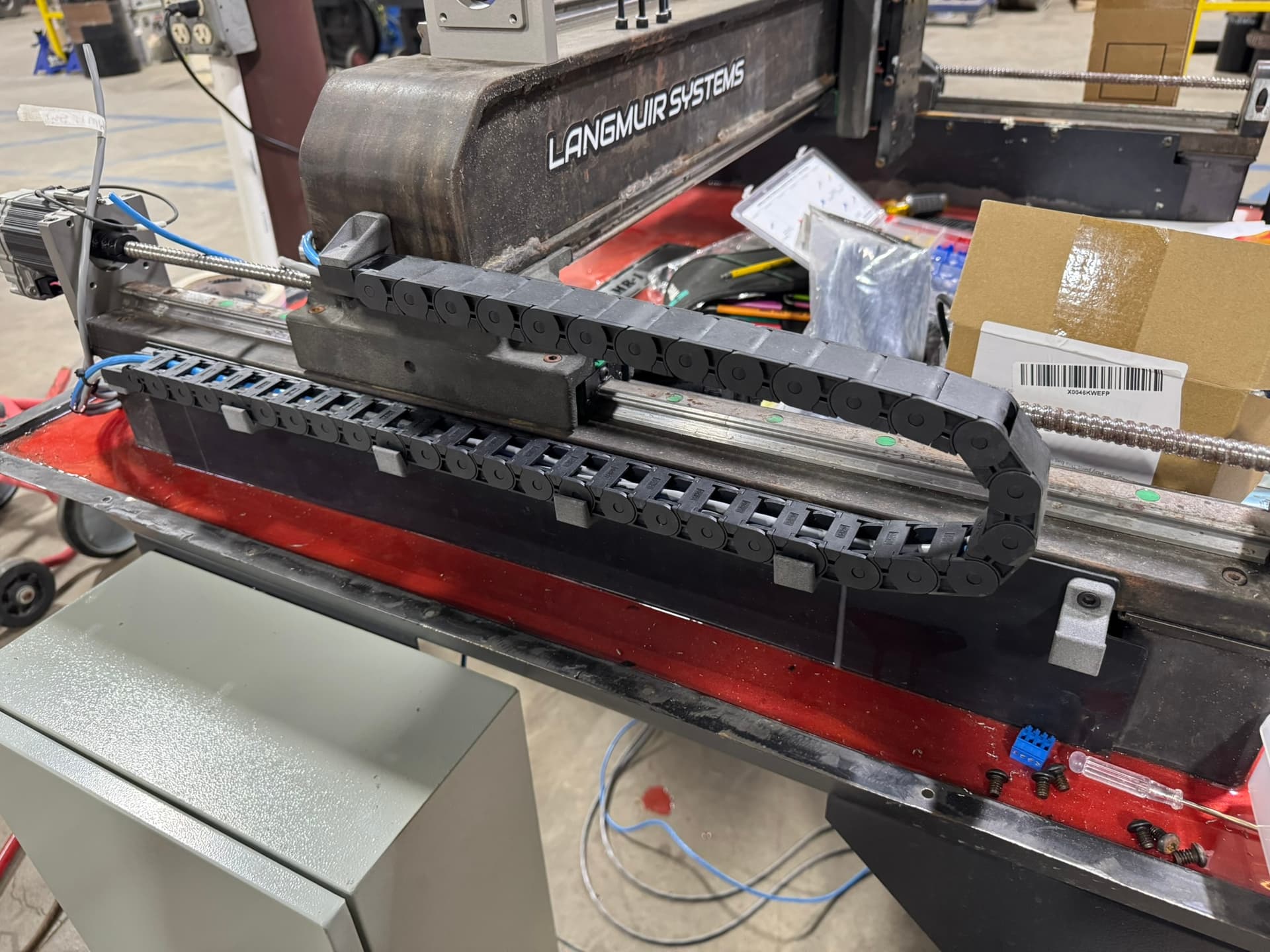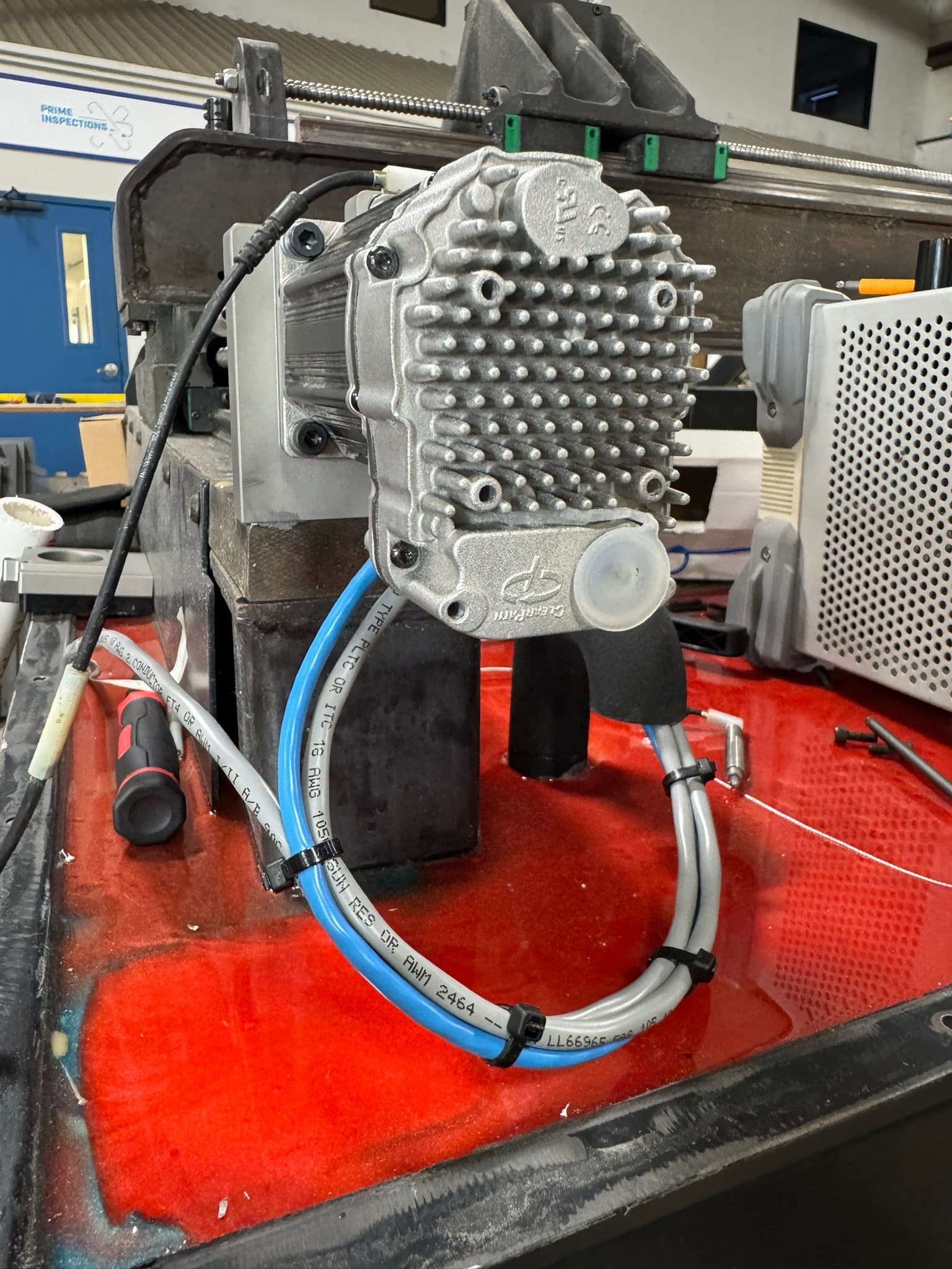 At the same time, I also dug out the concrete and installed some 3d printed larger drains. I raised the gantry 1”. My spindle choice is a 18k rpm 3.5kw water cooled spindle. Water cooled as I already had chillers available. This is a machine we use at work. I’m the VP of R&D and wanted a machine for small prototypes, production runs we out source. We design and build our own equipment in house. I already had knowledge and access to clearlink, hence choosing them. The control panels, all the wiring etc I already had on hand, The chiller as mentioned above I already had, plus access to SLS 3d printers for testing parts, lathes and manual mills etc.. Happy to share drawings and help make parts for anyone that wants to go down this road.