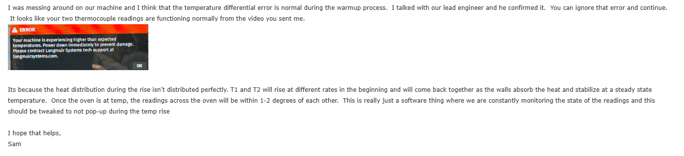 I’ve barely used my machine the last couple of months, turned it on today for a customer order and it damn near set it self on fire. Langmuir URGENTLY needs to fix this. Be on the lookout for another YouTube video update with more details…as soon as I see what Langmuir is going to do about this. I’ve seen the comment from @ssquared14 being sent 3 heating elements and the wires continue to melt. My business wont survive off of being ran around and no actual fixes @langmuir-sam