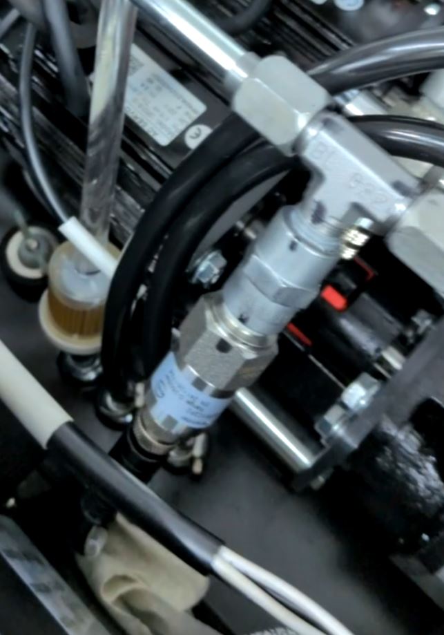 As far as the machine crashing and blowing the relief lines off - the problem was one of the pressure sensor electrical couplers not being installed properly from the factory - the threaded coupler was cross threaded, so it appeared to be connected and tight, but in reality the sensor wires inside were not connected, causing the machine to malfunction while pumping oil at full speed, blowing the lines off. discovered by Y1 / Y2 ram load not the same, machine would not allow homing, would not allow bleeding - had to manually bleed the rams, but the Y1 was still showing 2.5 tons. The machine would run in manual mode, but was still showing 2.5 tons after moving in both directions. I figured the sensor was damaged, but after taking it off, the coupler was cross threaded onto the sensor. I installed that properly, now everything works.