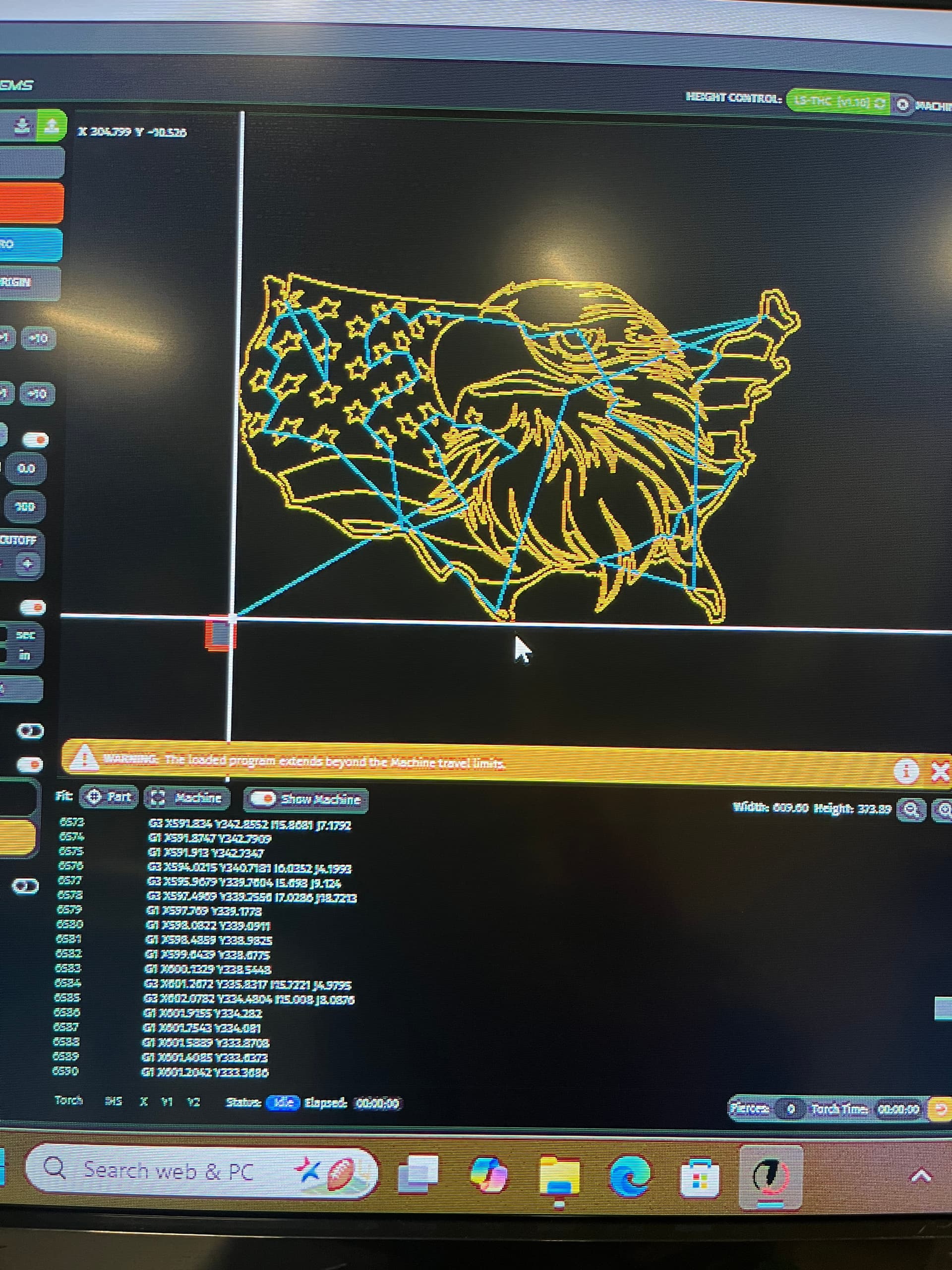 Jog the torch to the lower left corner(or anywhere that will show your design to fit in the metal) and hit “zero all axis” on the work tab of the DRO.