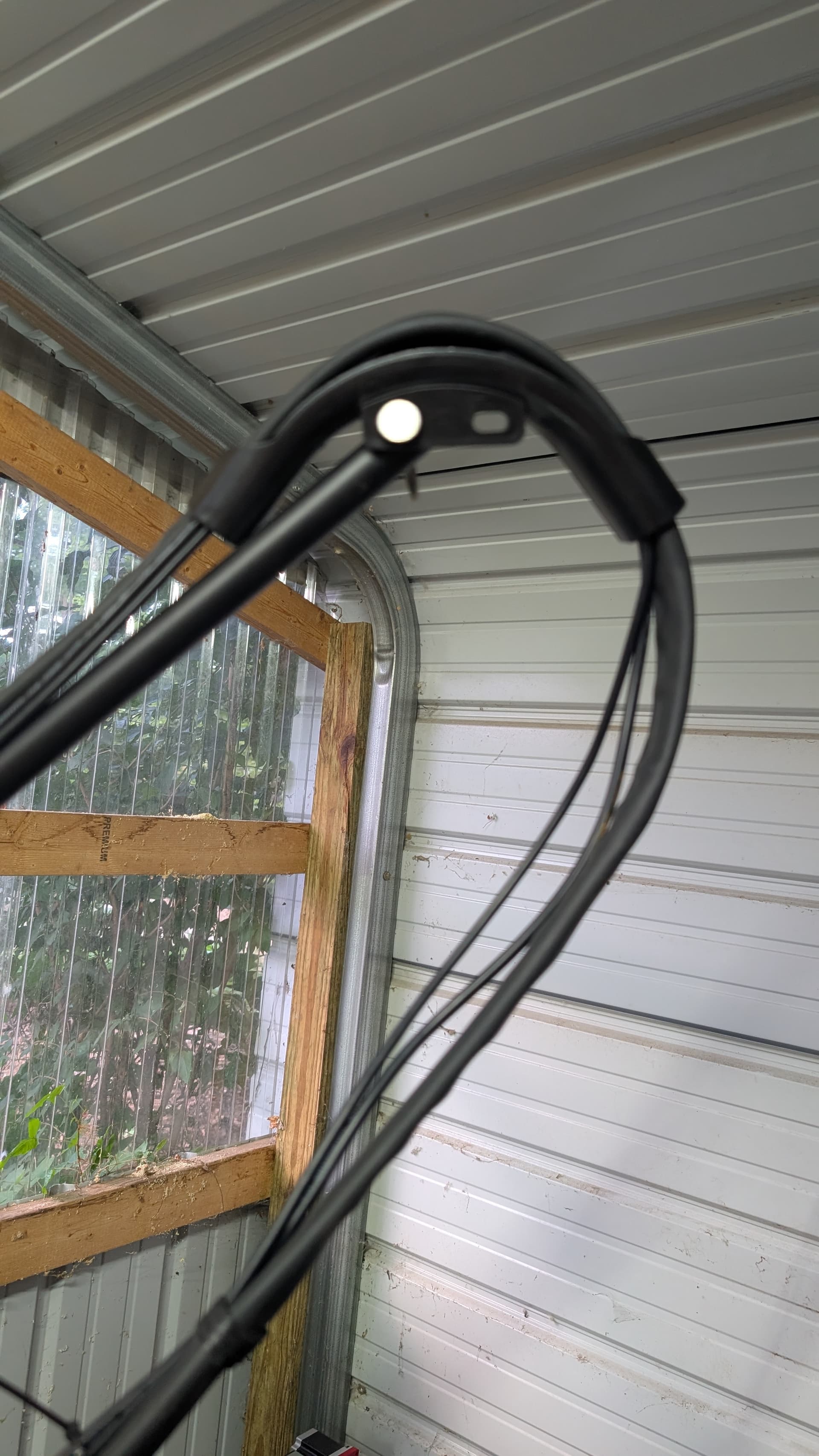 At the top of my arm I used a 3/4" PEX 90 deg support bracket to ease the sharpness of the bend. The white circle you see is the head of a bolt I used to attach it to the arm. Only a few dollars from anyplace that sells plumbing stuff.