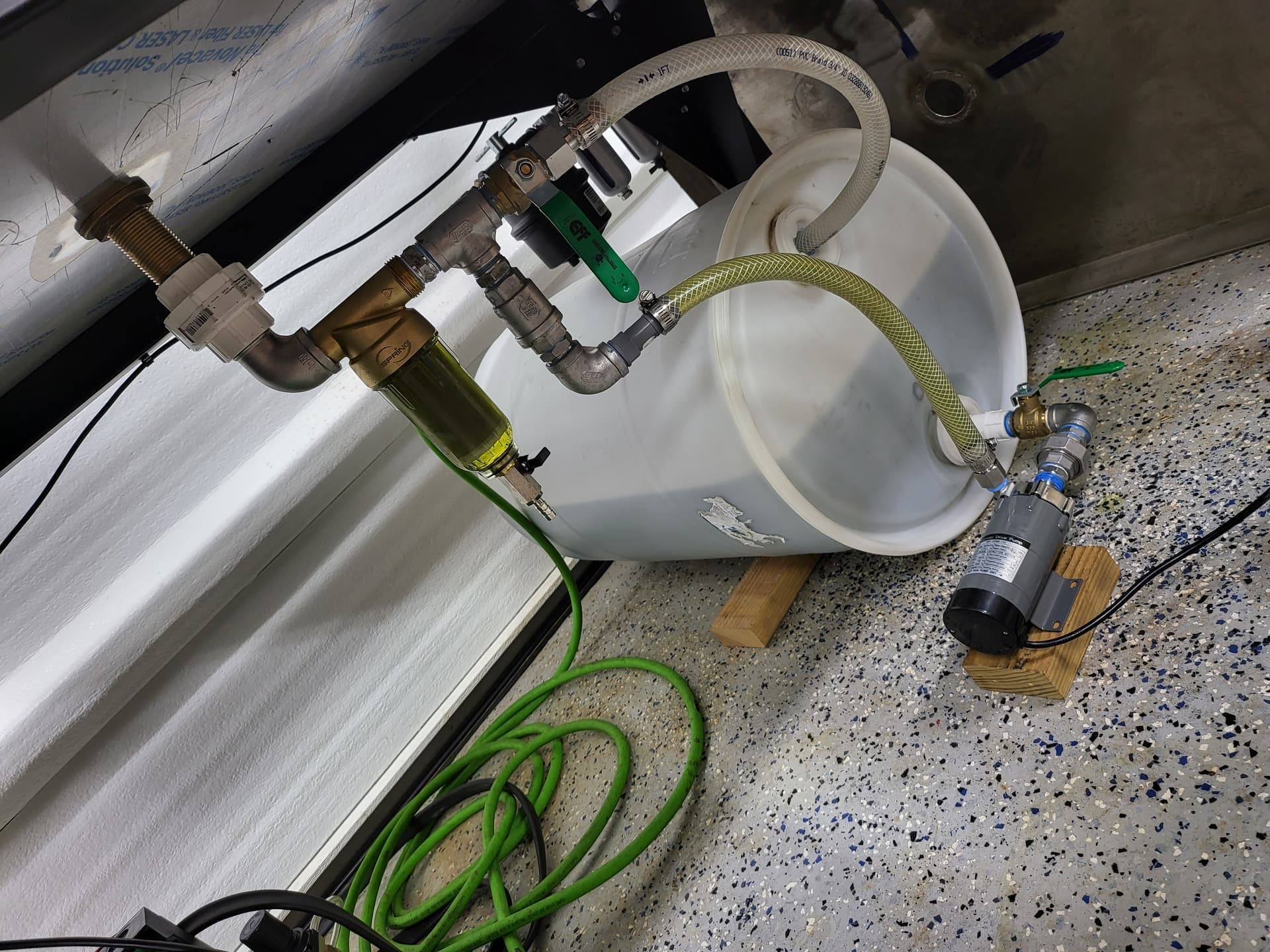 I have since added a 2ndary 10" “generic” water filter housing with a 20 um filter cartridge before the drum (on the table drain side) to help remove any finer bits and clarify the coolant that much more.