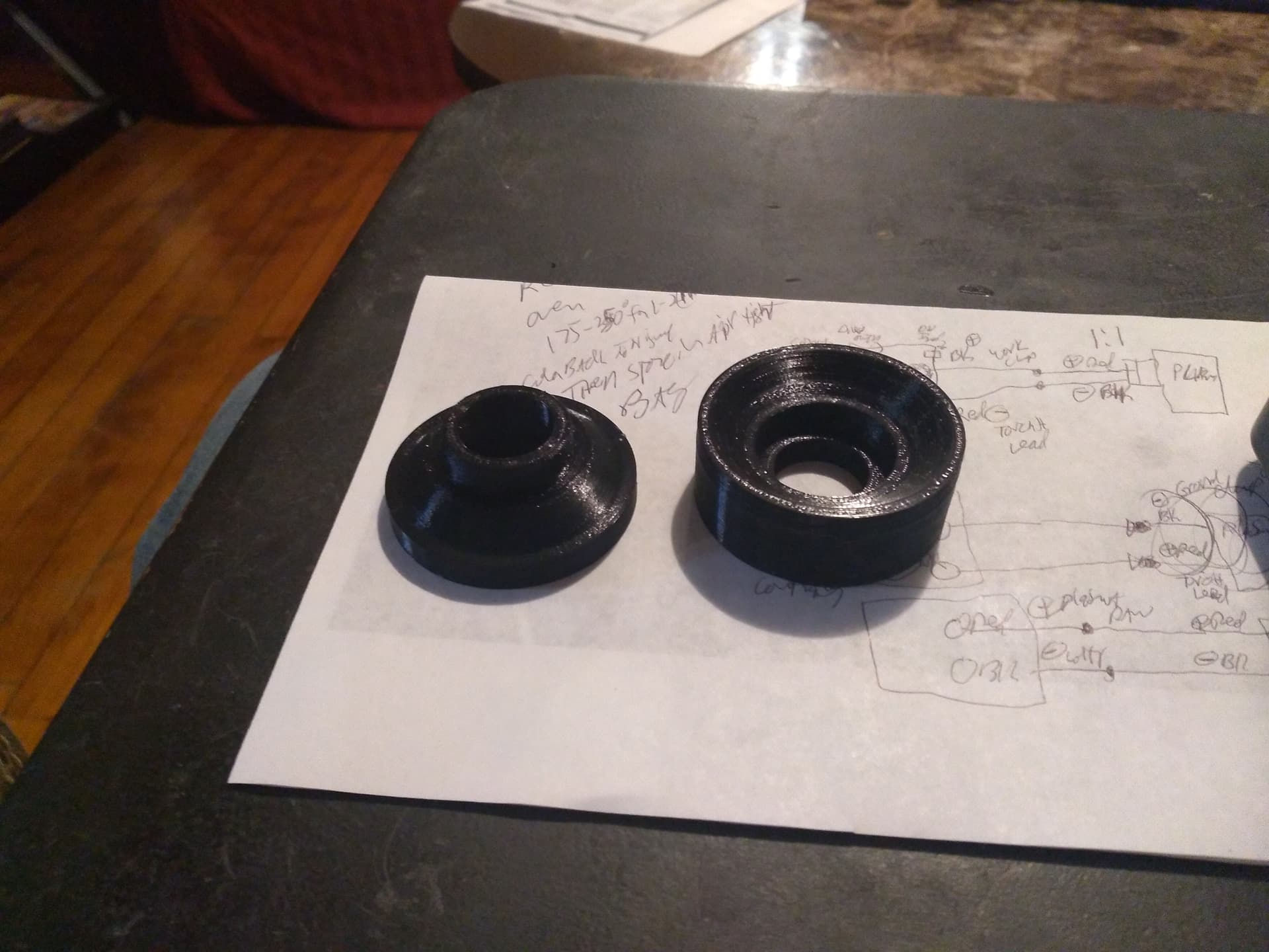 it centered up before tightening down. I had the 3/4” bolt (and nyloc) lying around so had to cut a piece of 3/4” pipe to act as a spacer (would have helped to use a washer between the pipe and nut, but didn’t have one. I also cut 2 small 3/16” plates from scrap and drilled two 3/4” holes in them, the plates are larger all the way around than the Max OD of the die. The 3D printed die did not pop or crack at all. Honestly was surprised since I was honking down on it with two 2’ breaker bars to compress it. I used some “Seal All” between the rubber flange and the pan hole of the dimple. The drain was/is slightly off center, but since the seal all was starting to set, I did not change it, and it holds water no leaking.