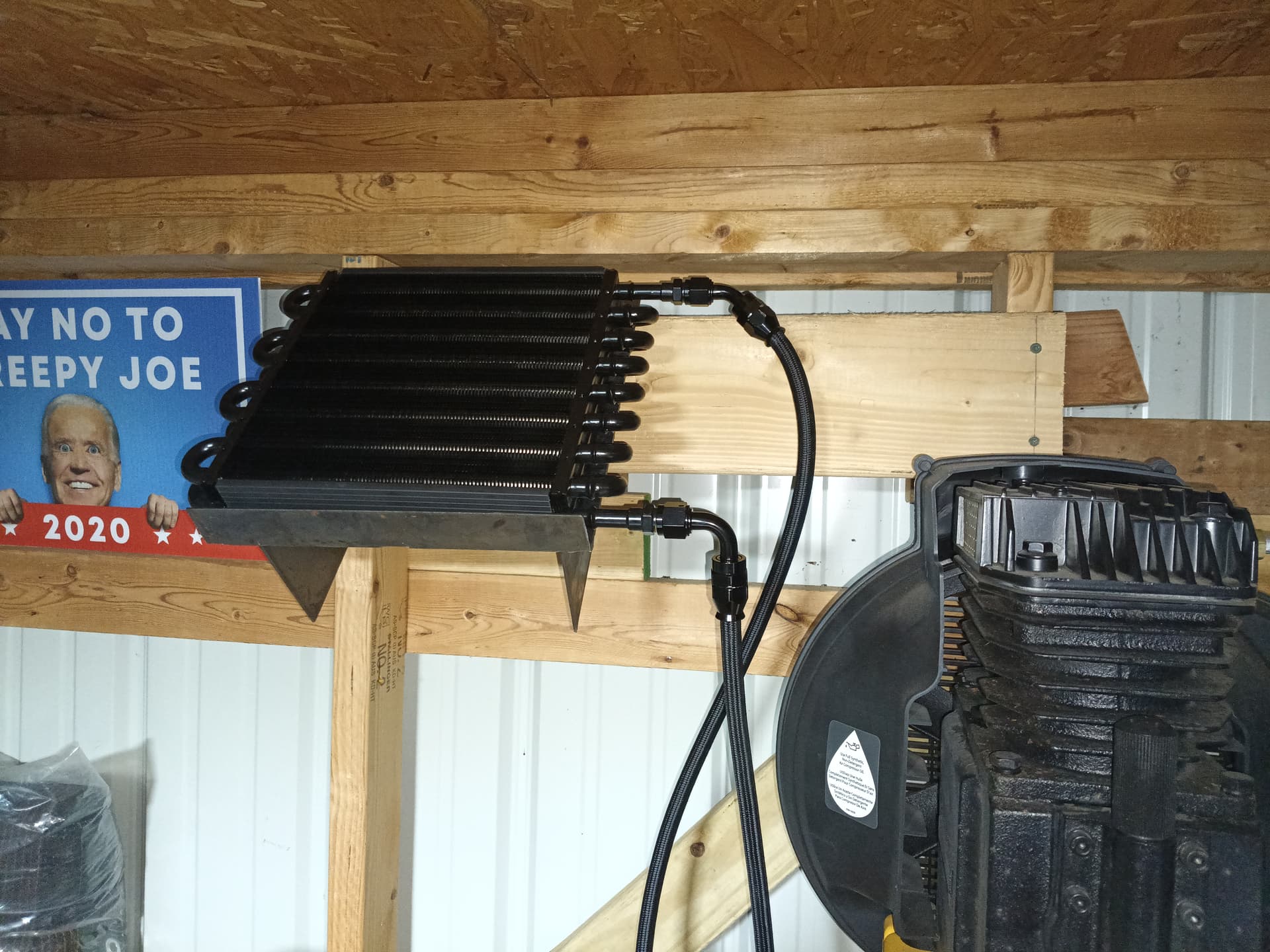 Finally back to correcting my moisture problem. I have not cut in i while. I designed and cut a bracket to hold my Derale 15300 at a 45 deg angle to reduce the chances of water building in the loops. I will post the file when I get back to my computer.