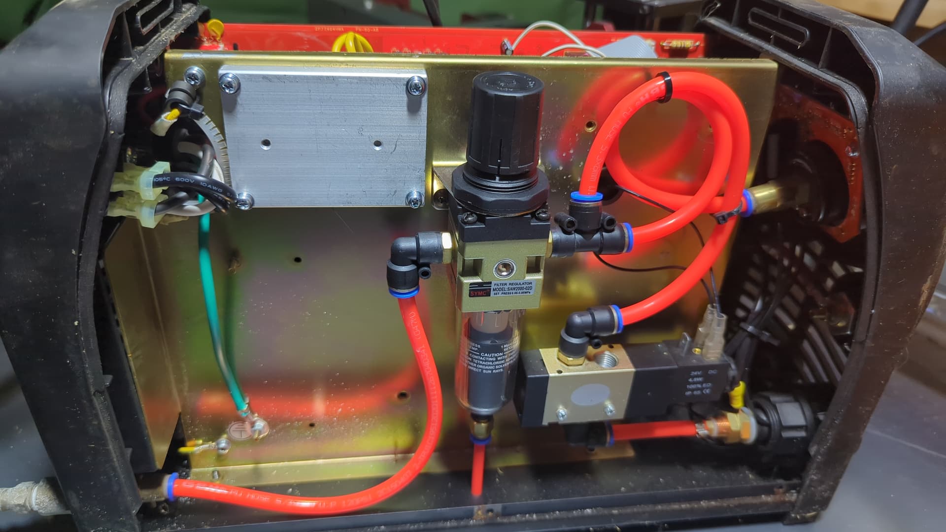 On the front of you Razorweld there is an air switch that will help Replicate when the torch is cutting. Most likely you will have to Open the Case, 10 screws- 6 side, 4 top and end of handle, and set your Regulator to 85 -90 psi.