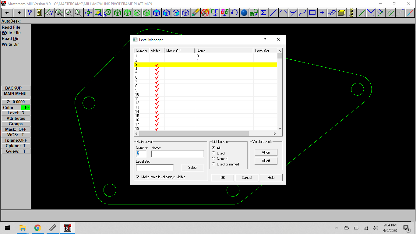 mastercam has a feature where you can assign layers to certain pieces of your drawing.