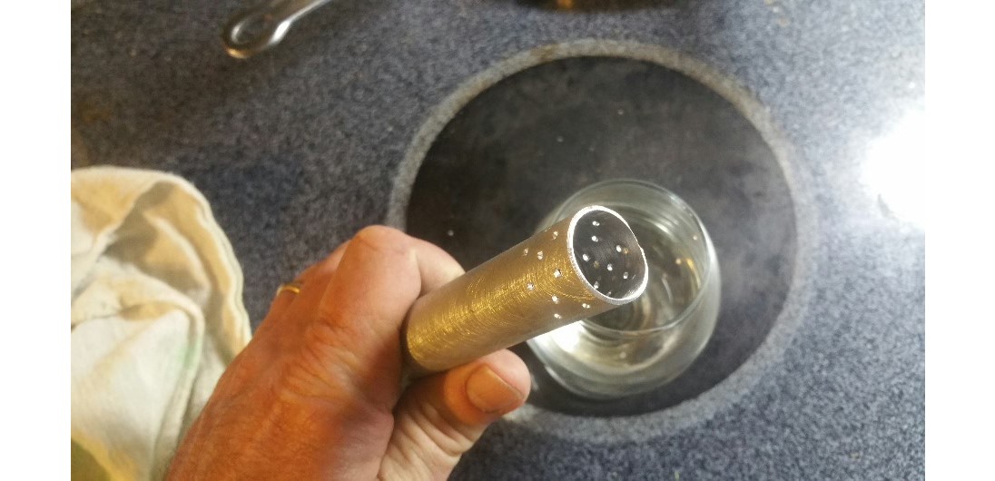 Find a pc of some kinda tube, I had a pc of Aluminum that was close in size, so I took it to belt sander and turned about .020 off of the od for a press fit into the filter lid. Also marked the length I needed