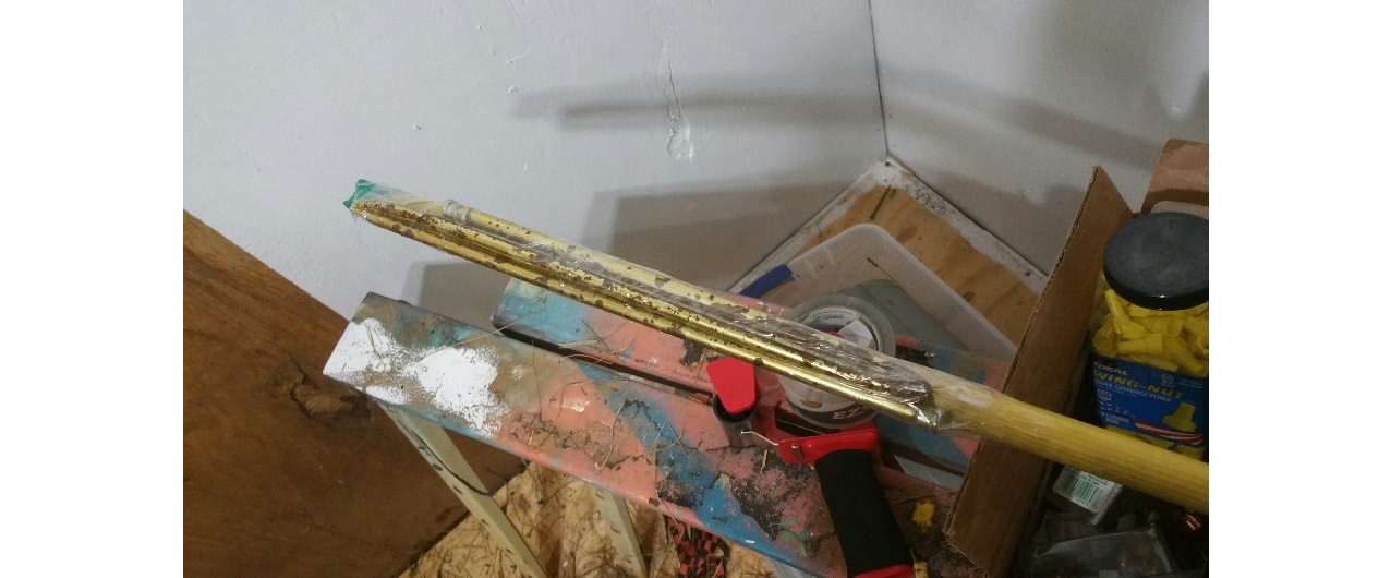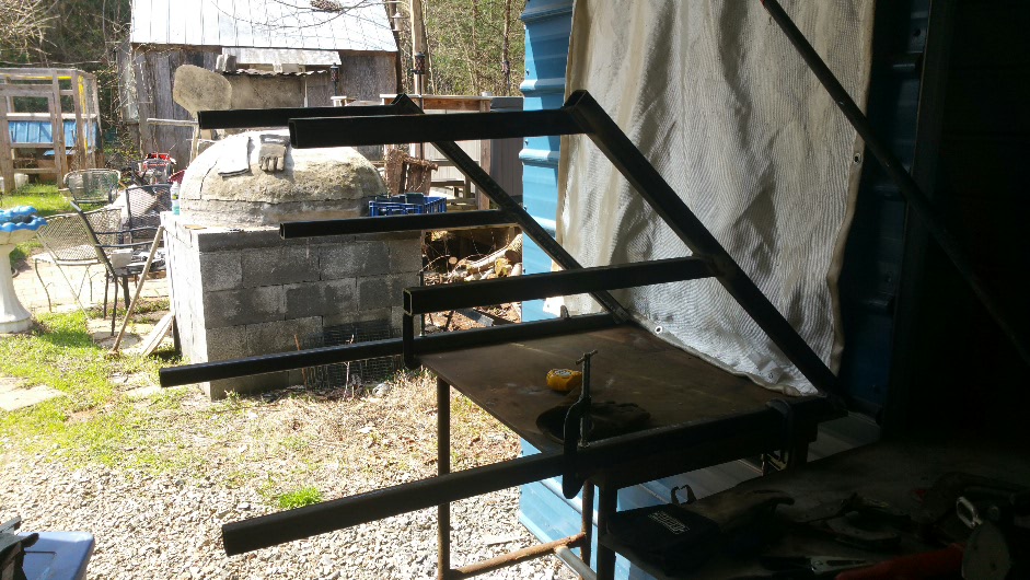 I found this old curtain rod, a couple quick bends and a trip into the house for some packing tape (didn’t want to waste $$$ tape on this…