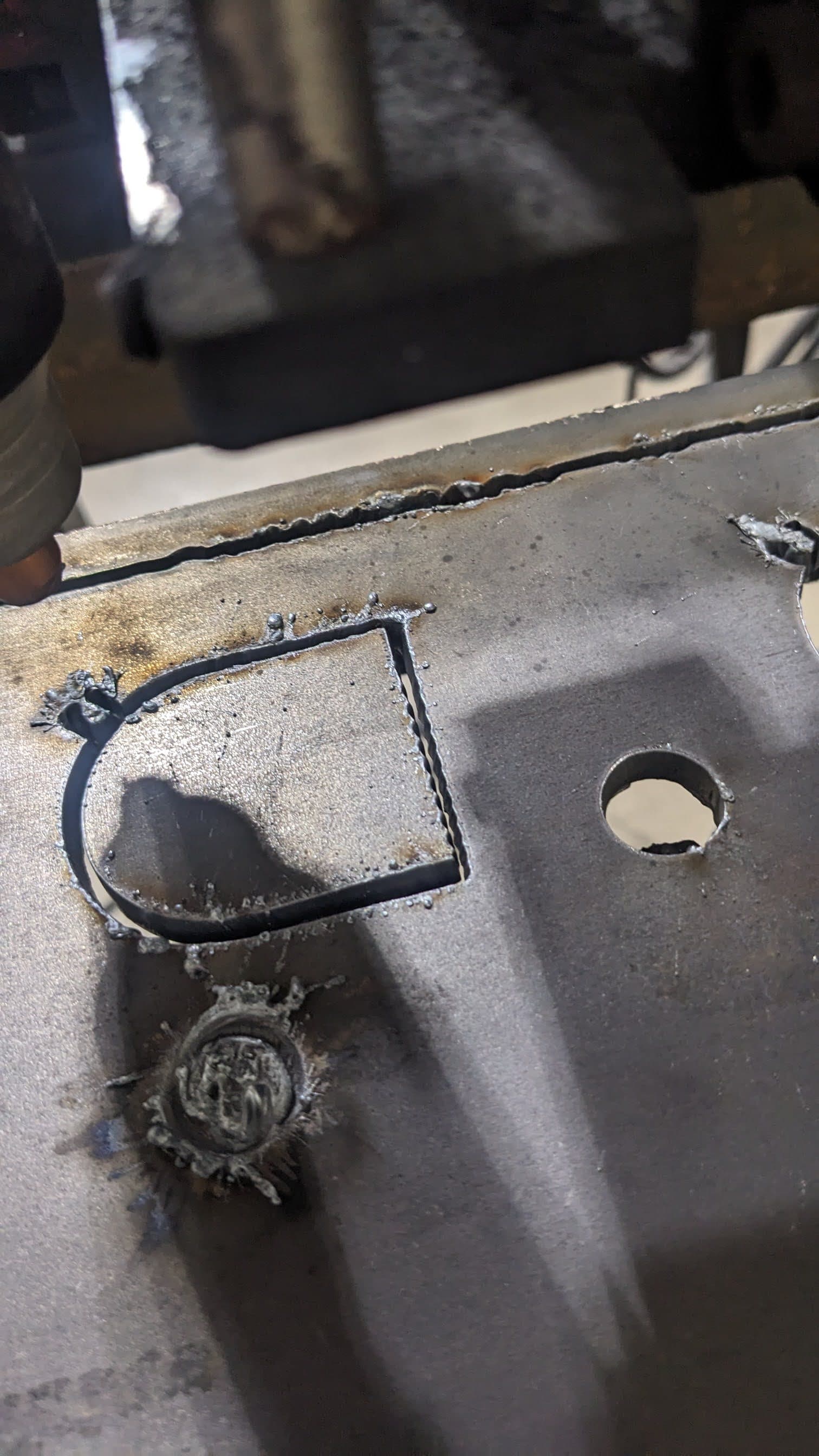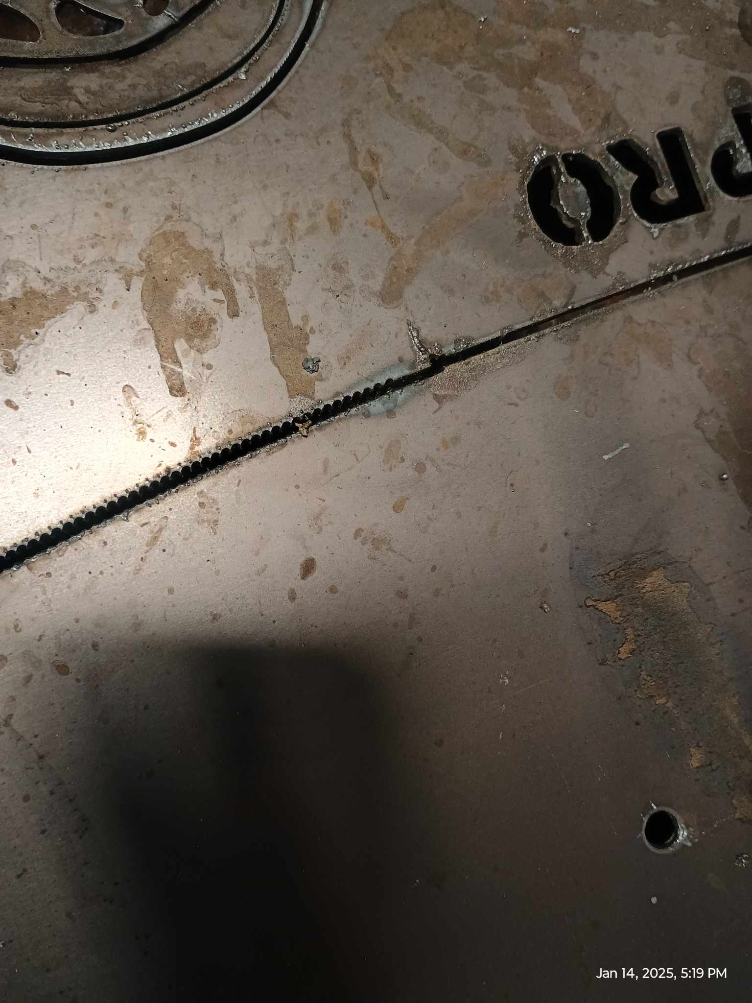 At that point I changed all consumables including the swirl ring at which time I noticed that the electrode was near stuck in the torch, I gently replaced it and picked up where it had left off, hoping that would fix it. I started it back up from where it left off and the problem persisted, it would start the cut fine and then start to cut jagged. I was frustrated so I left it for the night and returned the next day with some gathered knowledge from Google searches and a post I made on the Facebook Langmuir Crossfire Owners Group.