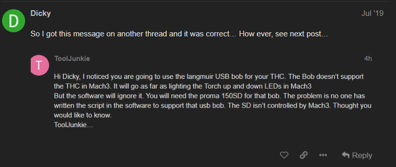@TomWS I’m not sure what you just said, but if you get mach3 to run an up/down THC with the Langmuir breakout board, then by all means post your wiring schematic, settings, and some videos. We are all waiting!