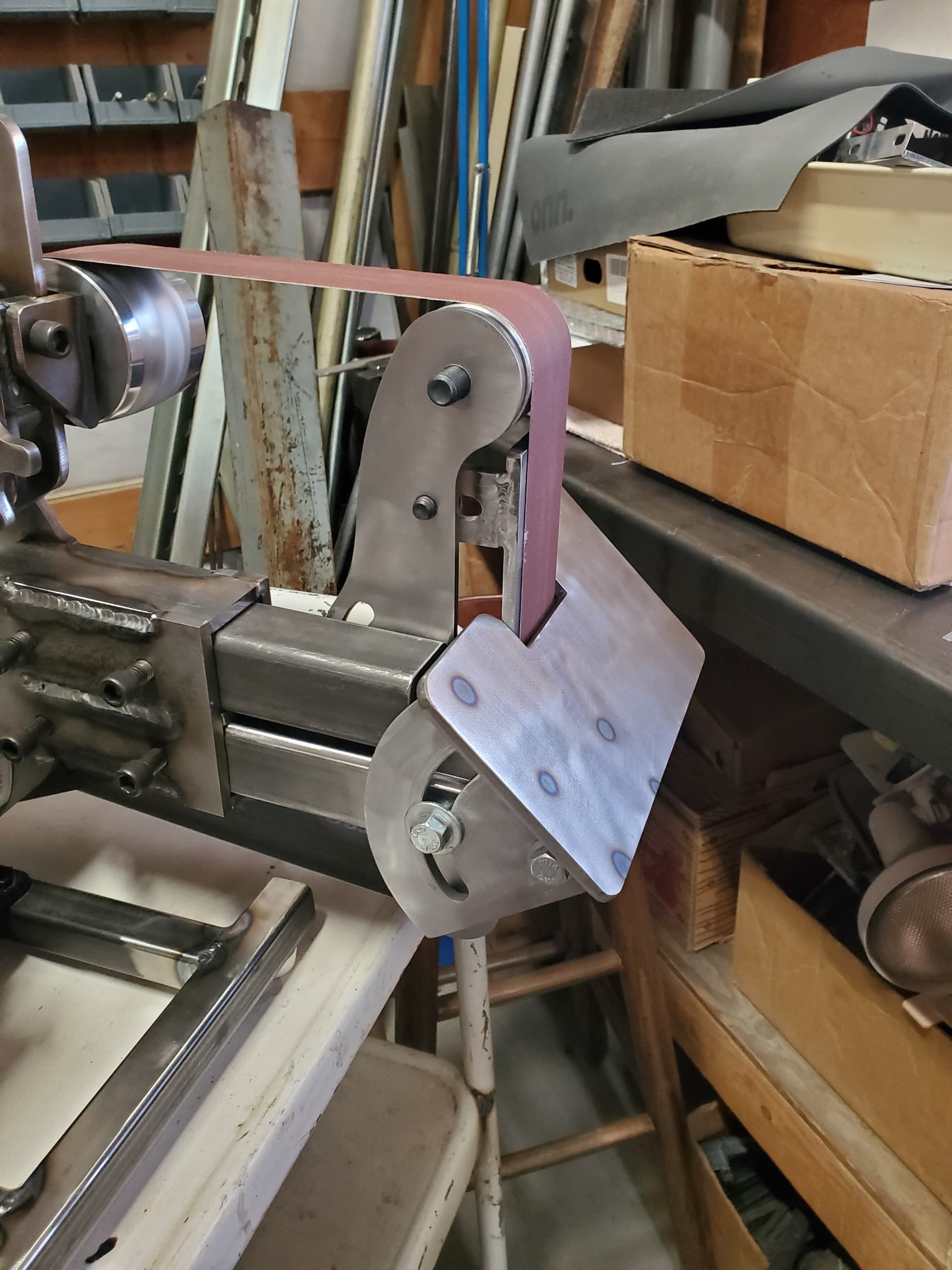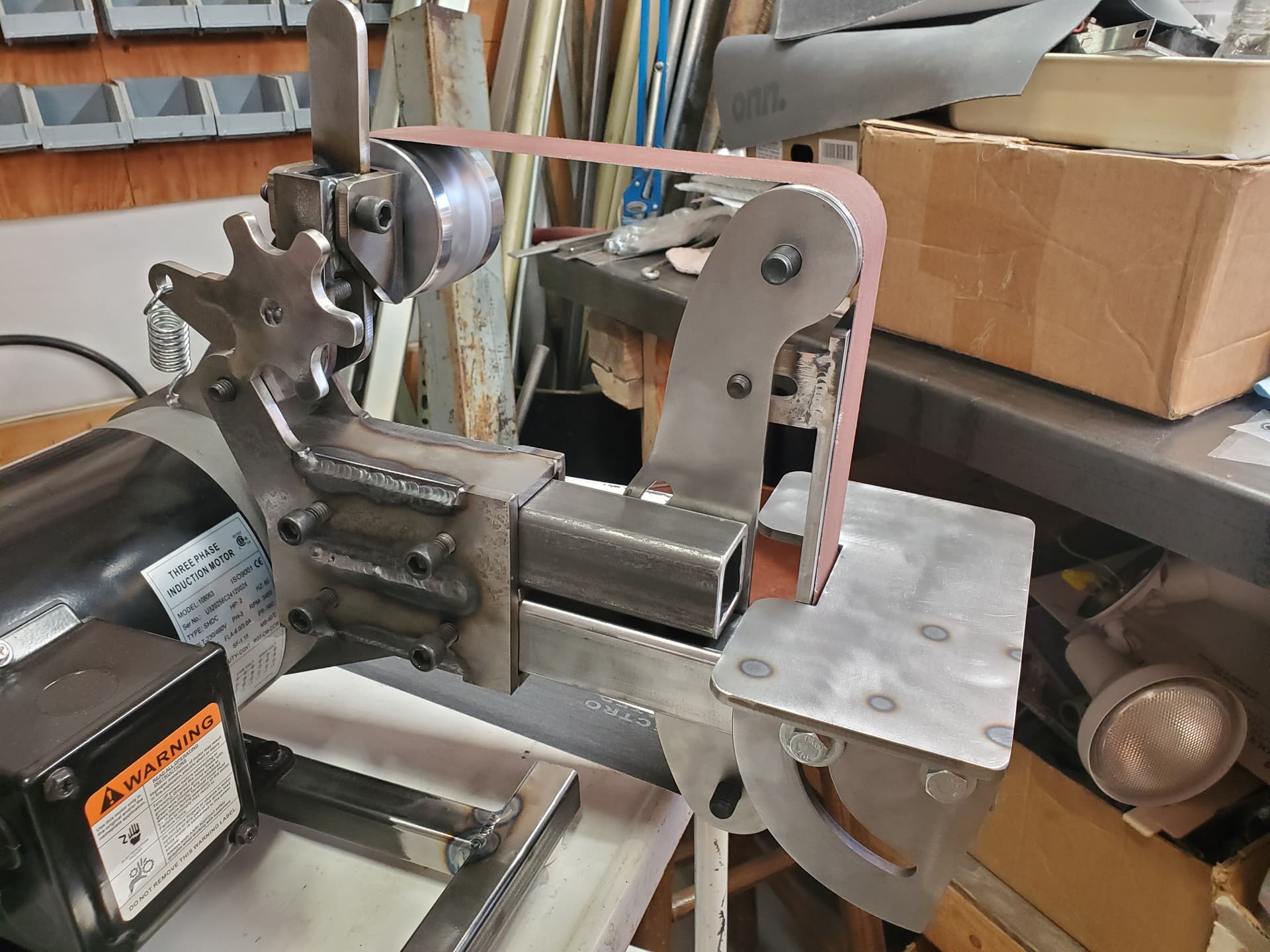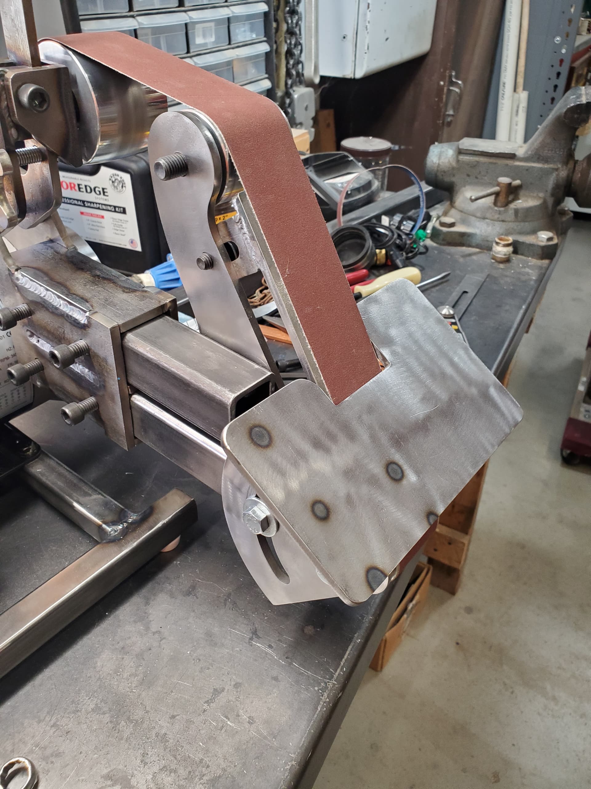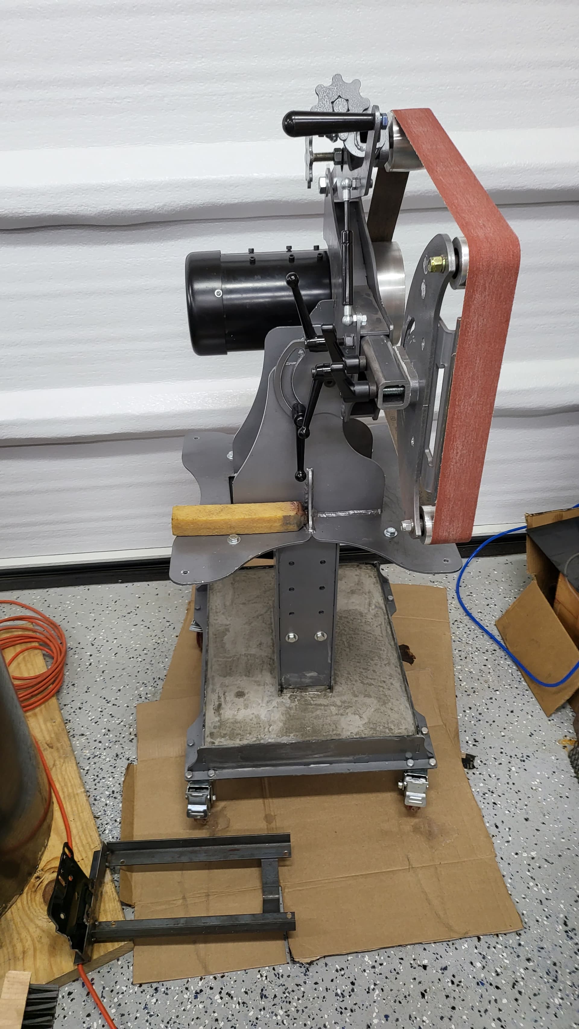 Got some more done on the Belt Grinder, the mechanical part I believe is done. I need to paint it and work on the control panel. Since I plan on having it on a cart, I plan on putting the VFD in a box on the second shelf down and probably 3D print an enclosure for the control panel.