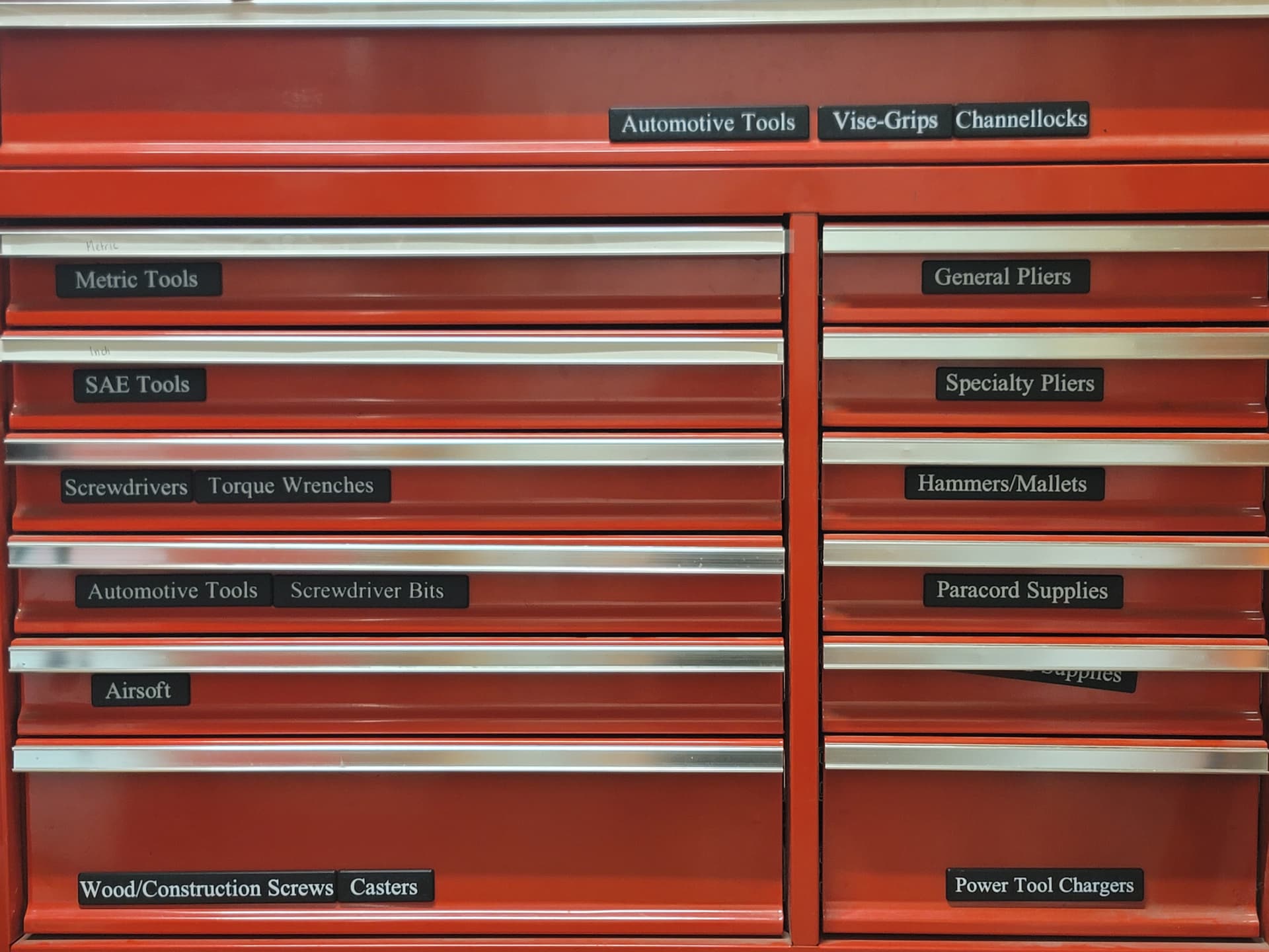 Finally a drawer labeling solution I like. Magnetic name tags that travel with items when I reorganize drawers. Those labels that they used to use on the face of the pulls on the US General boxes never worked for squat.
