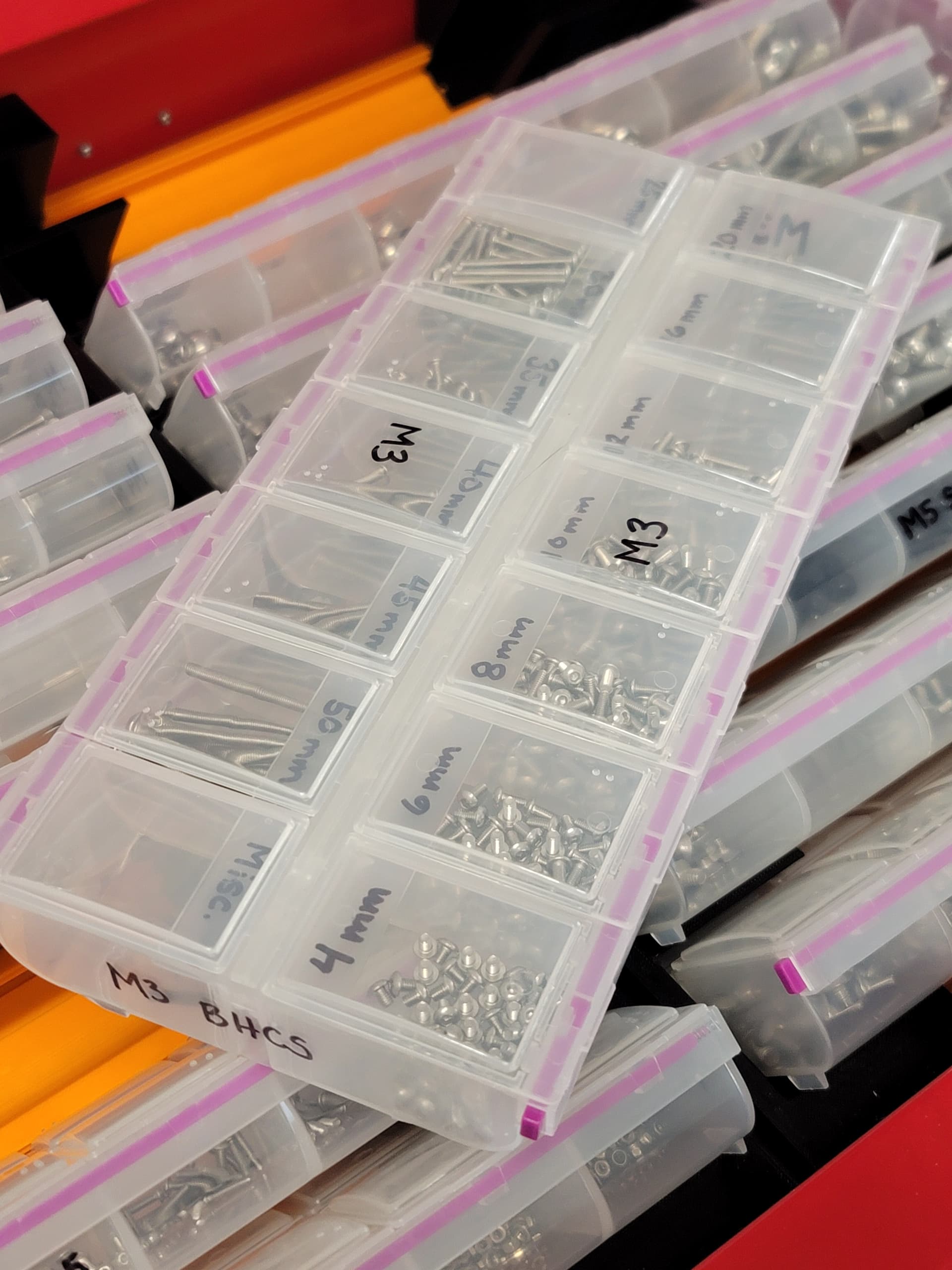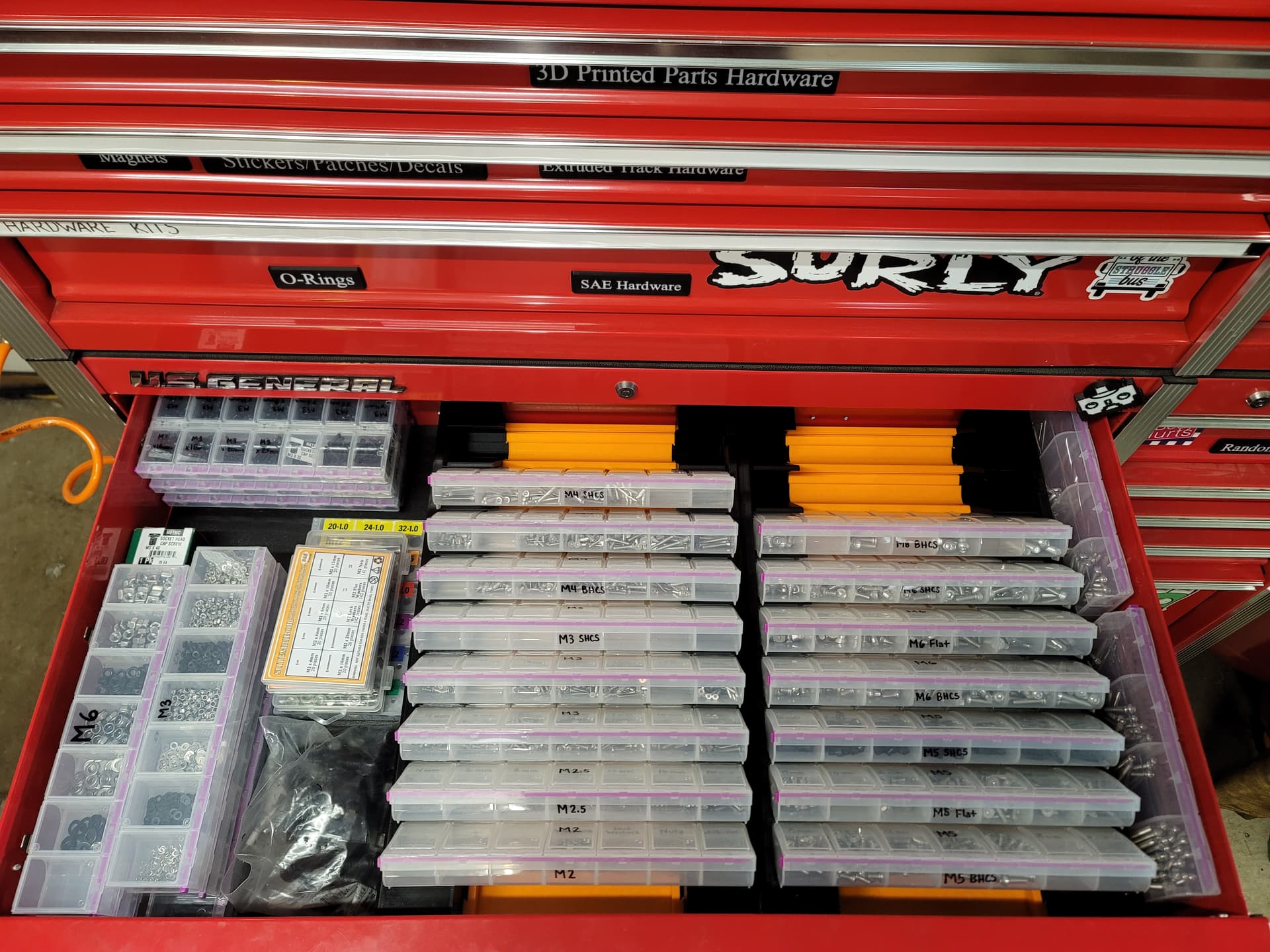 It had basically gotten to a point where something had to be done before the situation got completely out of control, and I wanted to go a bit overboard and make sure I solved the problem for good. Now when I need to add new hardware to my storage system I can just add another sorting bin, and when I run out of slots, print a new tray of holders.