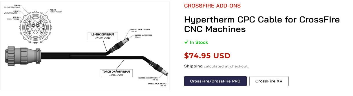 Since the pin outs are the same between hypertherm and CPC, I’m planning on purchasing this CPC cable from Langmuir. Obviously, for Titanium having different voltage divider (20:1), I would have to configure raw voltage.