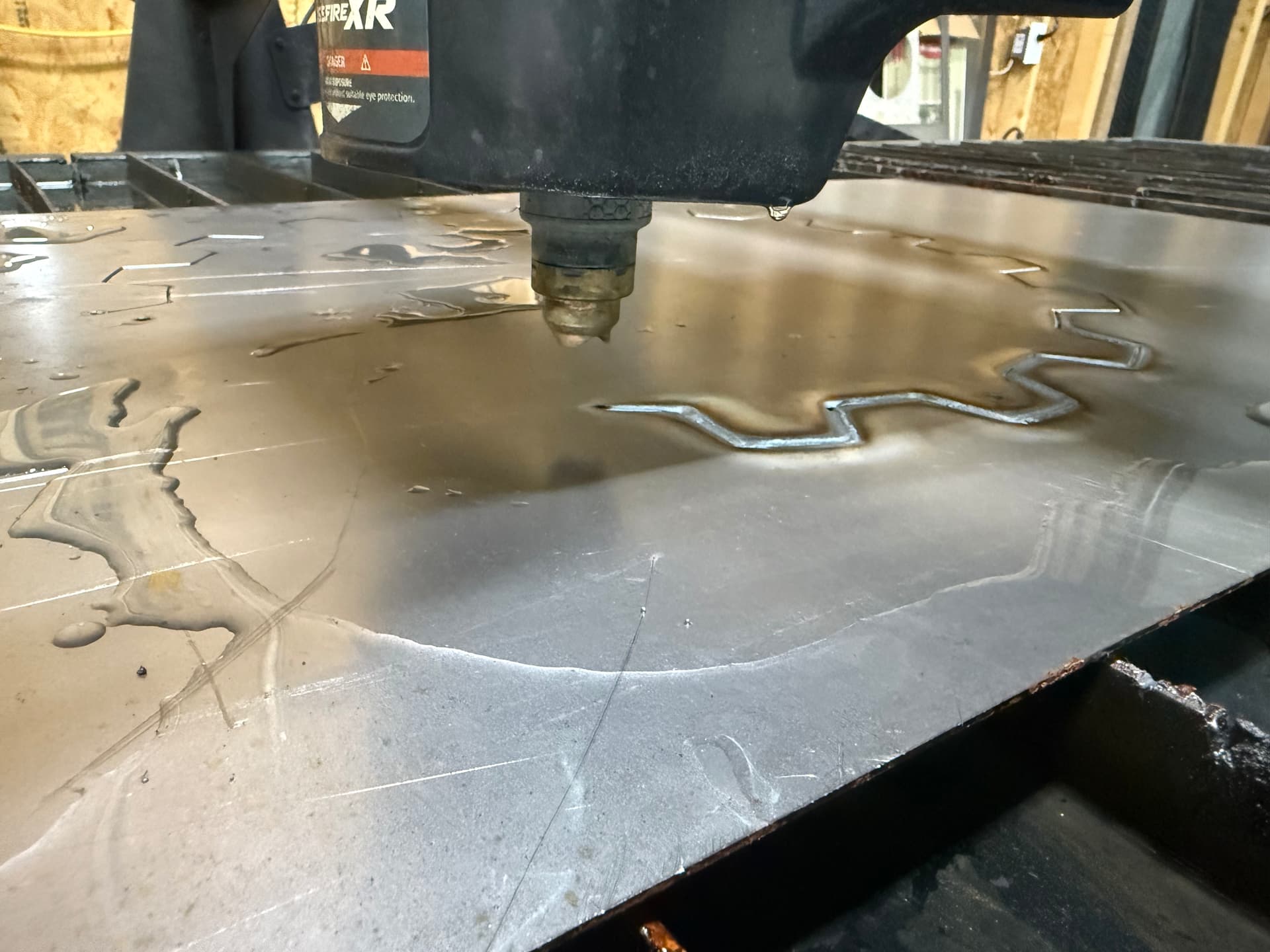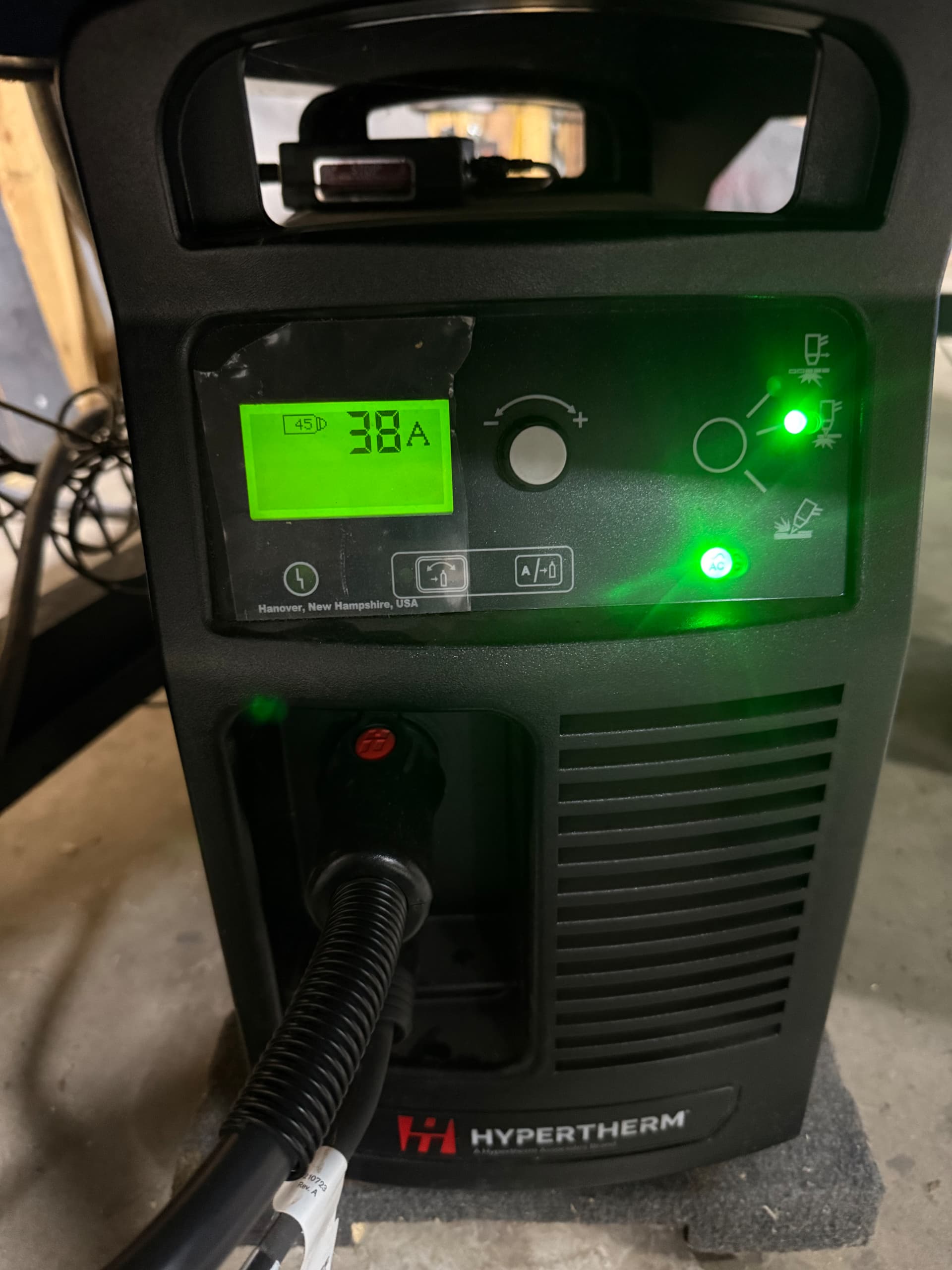 The soapstone marks on the upper right and left is where the tip took a dive, ground clamp at top corner. It messed up on the longer cuts maybe 1-1.5 feet in length before it dived.