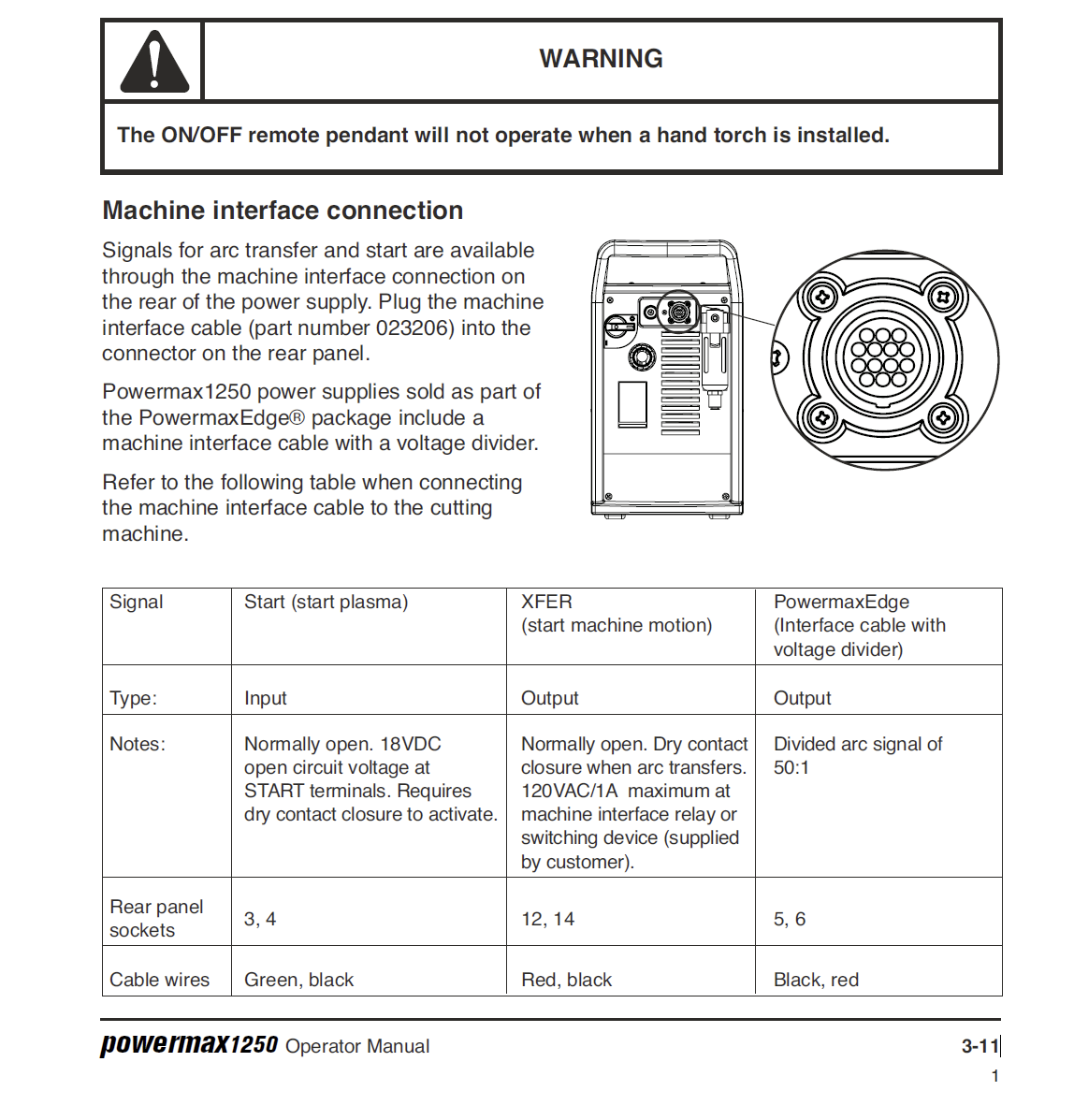 This Ebay listing claims this will fit “Hypertherm” machine but I don’t know if all CPC ports are the same with all models of Hypertherm machines. And then you can configure the correct pins. You will need the torch on/off (polarity does not matter) and the other two that monitor the voltage (polarity will matter from torch and work lead).