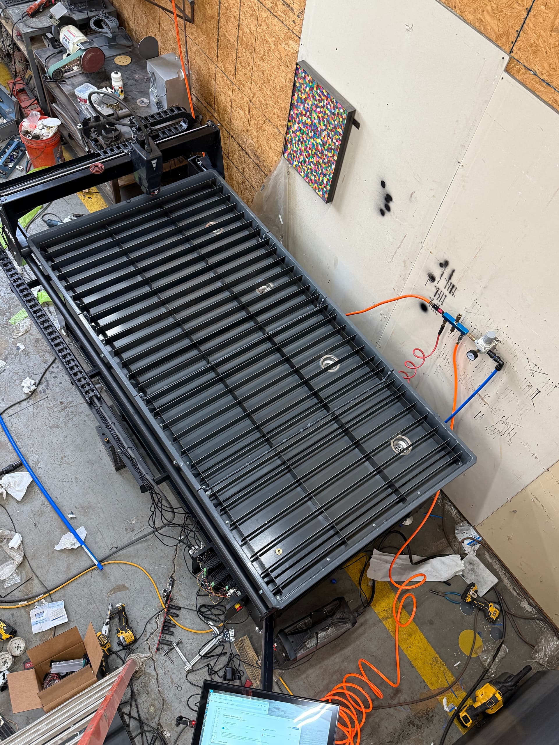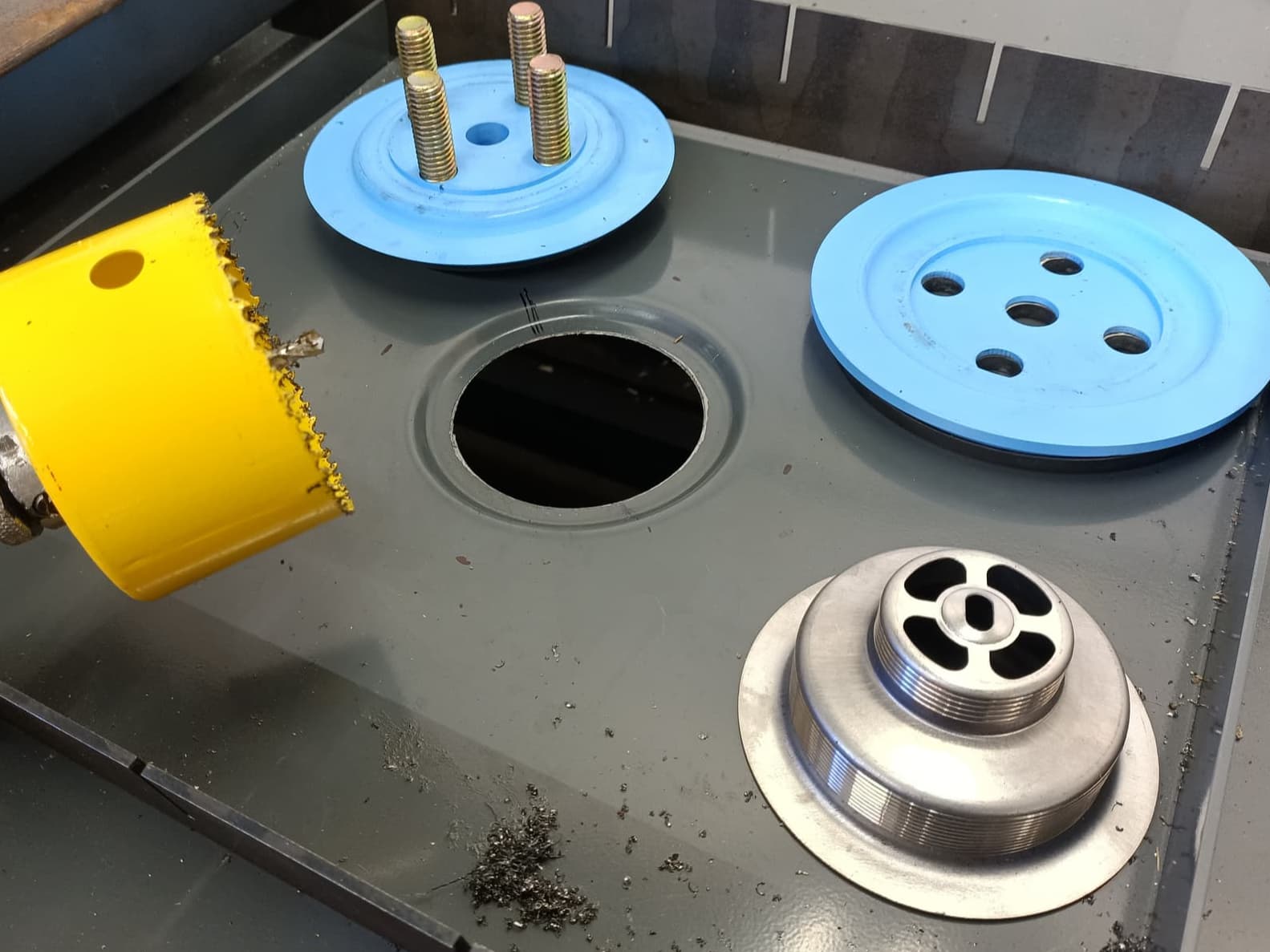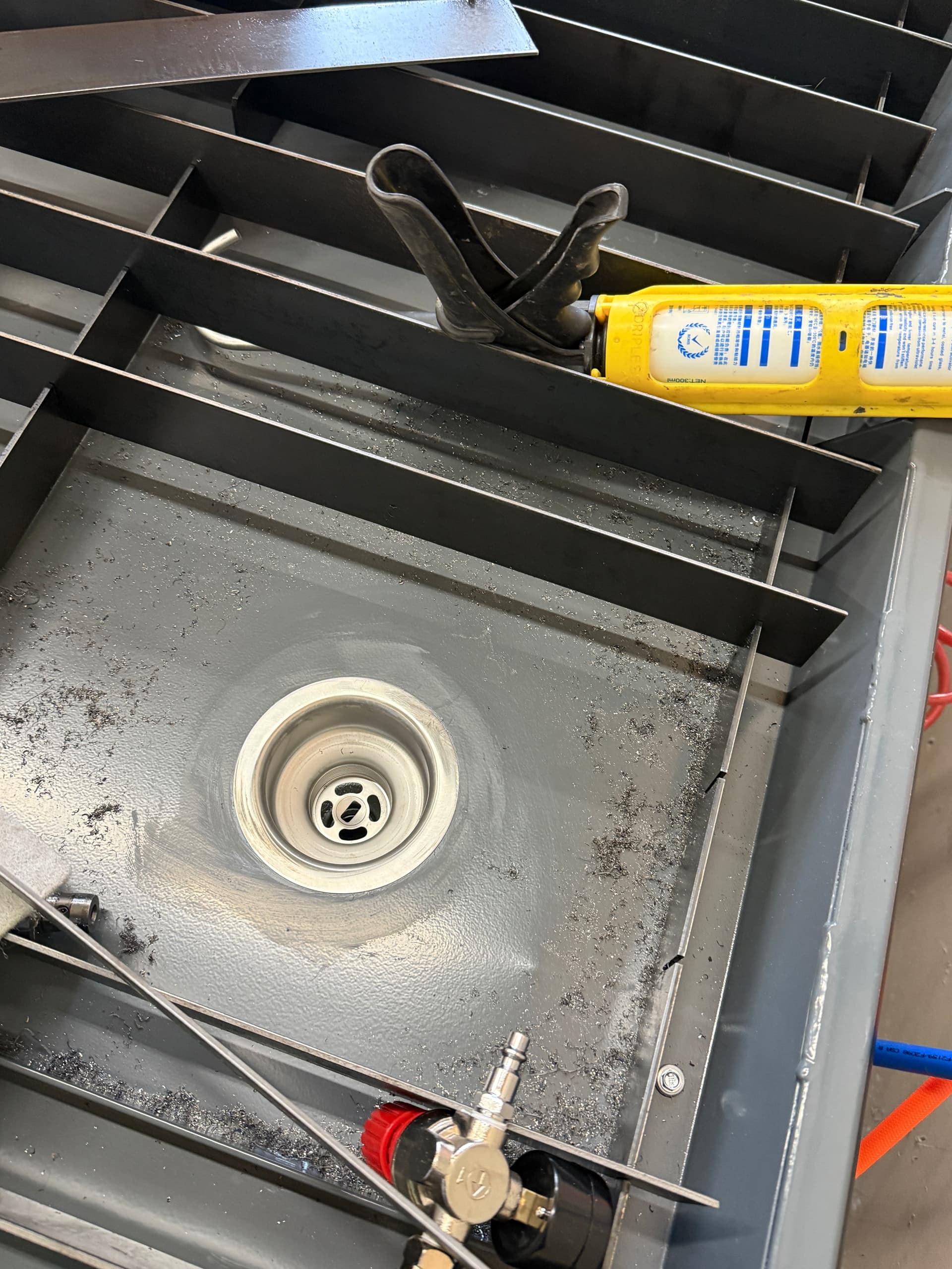 I would recommend putting some kind of filter between your table and your tank, otherwise you’re going to collect a lot of steel bits in it that are going to extremely difficult to remove over time.