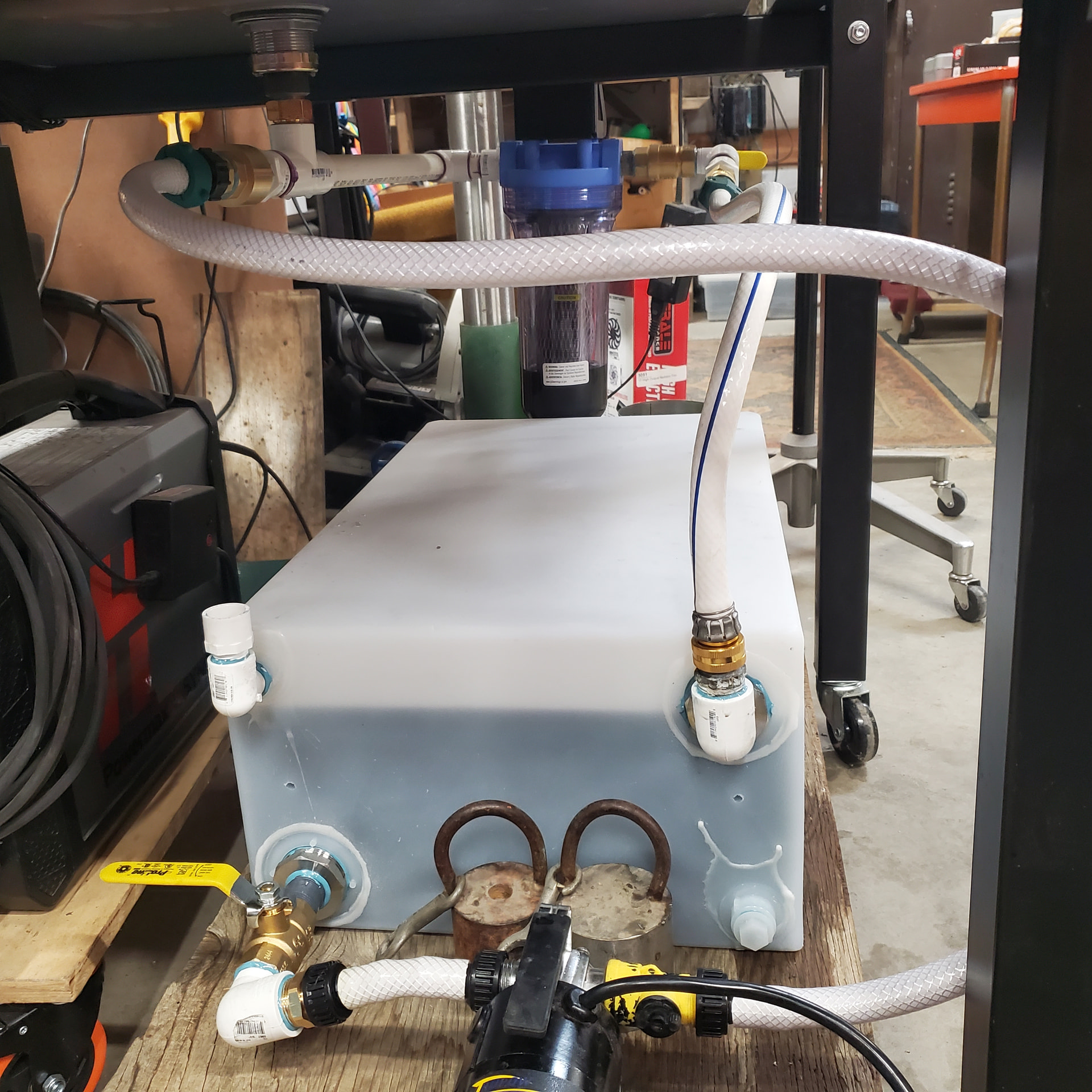 I really like this setup, but I’m thinking a 13 gal RV water tank for my little Cross Fire table.