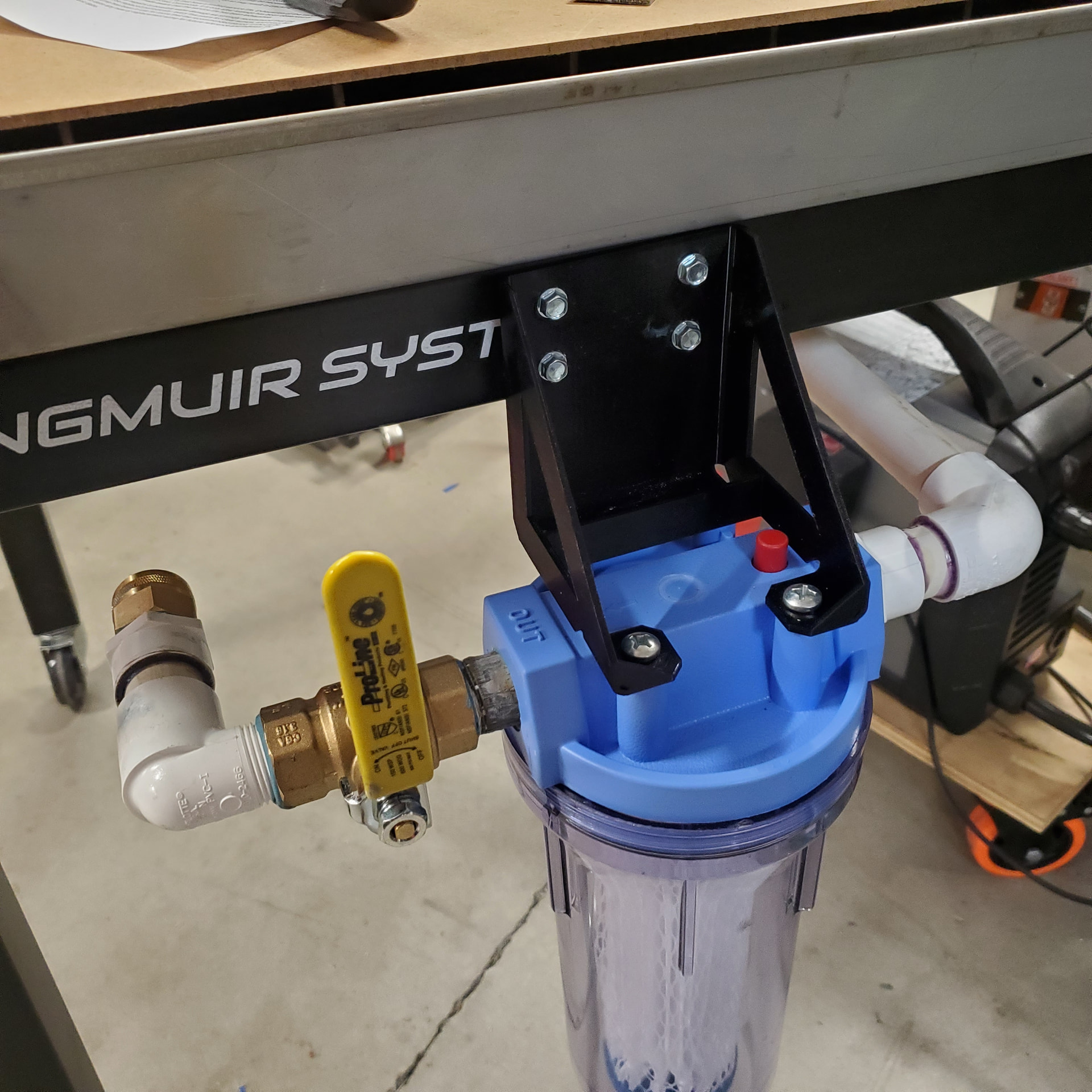 I have my storage tank installed and working. Until I build a platform / shelf under the table I have the tank and plasma cutter on little carts, and everything is working great! I probably could have used a smaller filter, but it’s fine. I 3D printed a bracket to hang it.