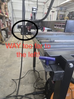 You’ve positioned the water table incorrectly. When in the low end of the Y range the torch should be inside the pan rim. The pan should overhang the front cross bar by about 1/4”.