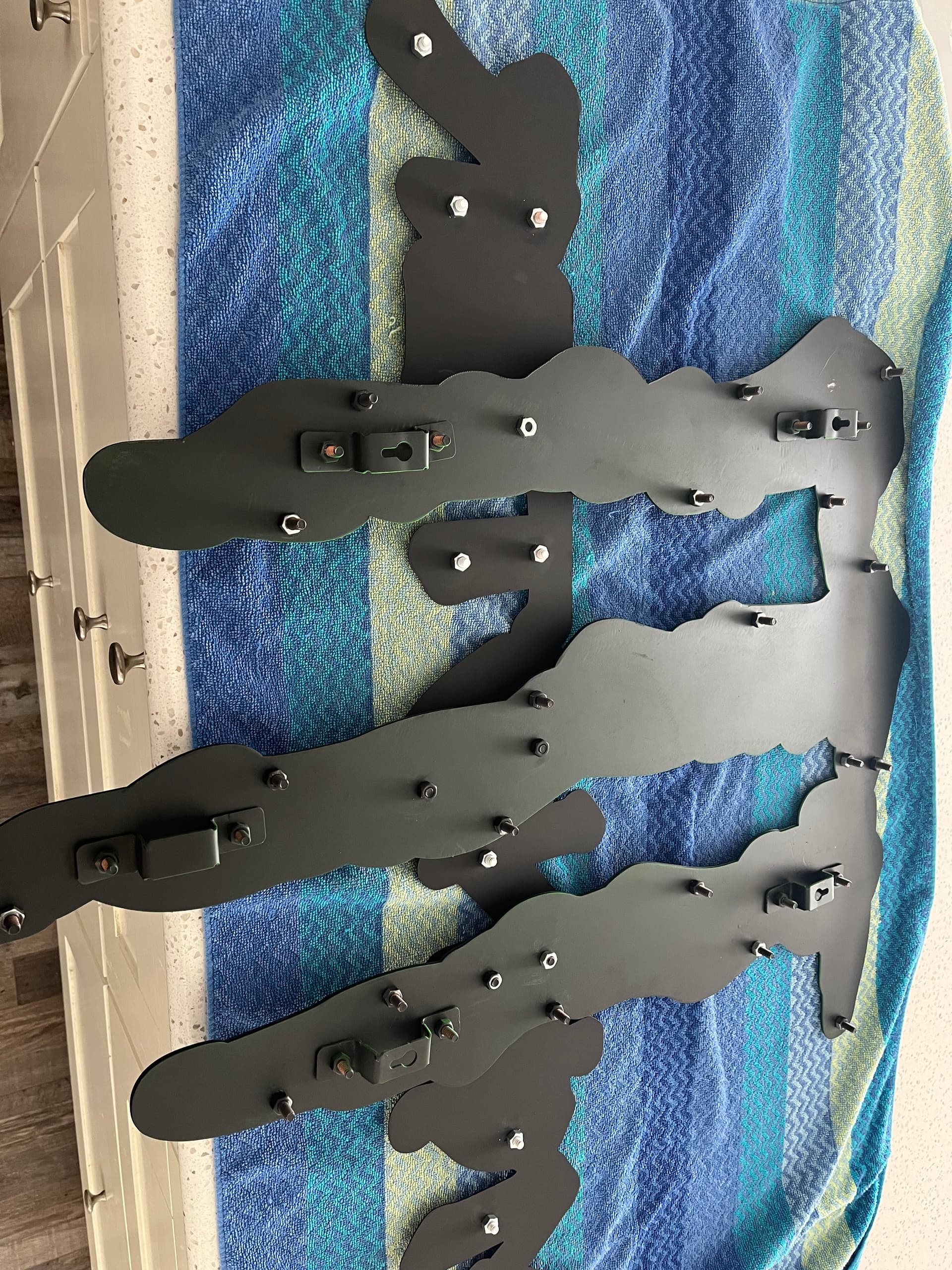 I also cut 32 modified versions of the hangars for steel storage in the Fab trailer that work is letting me set up. Left side.