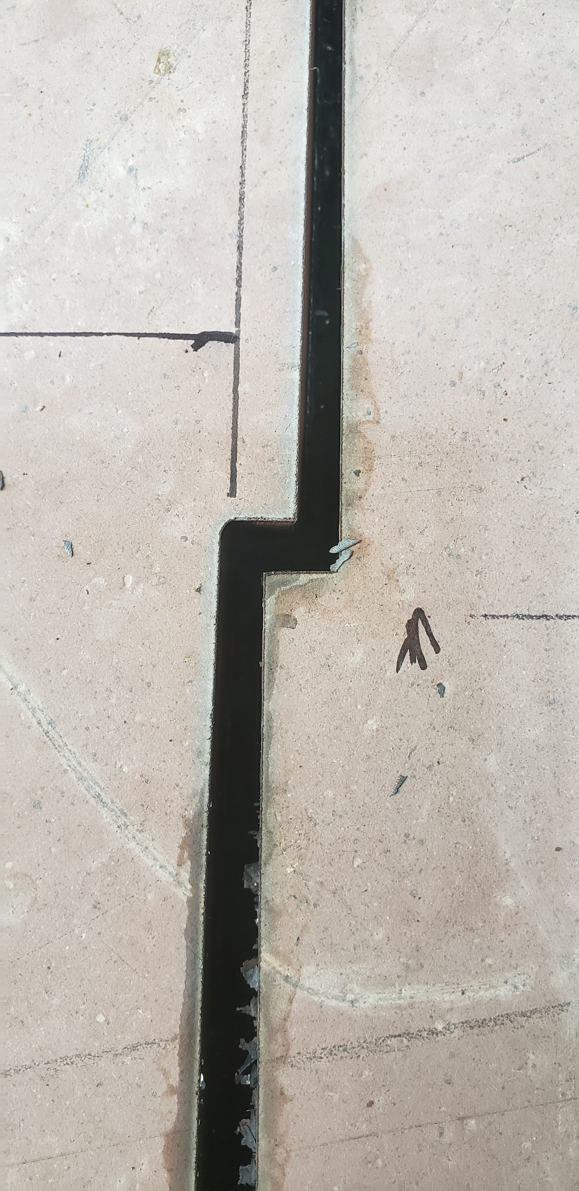 This stuff has some evil thermal expansion. I should have left tabs. This is 25" into a 30" cut. I also did not use the smoothing or reduced feed rate for the corners, did really good. 7ipm
