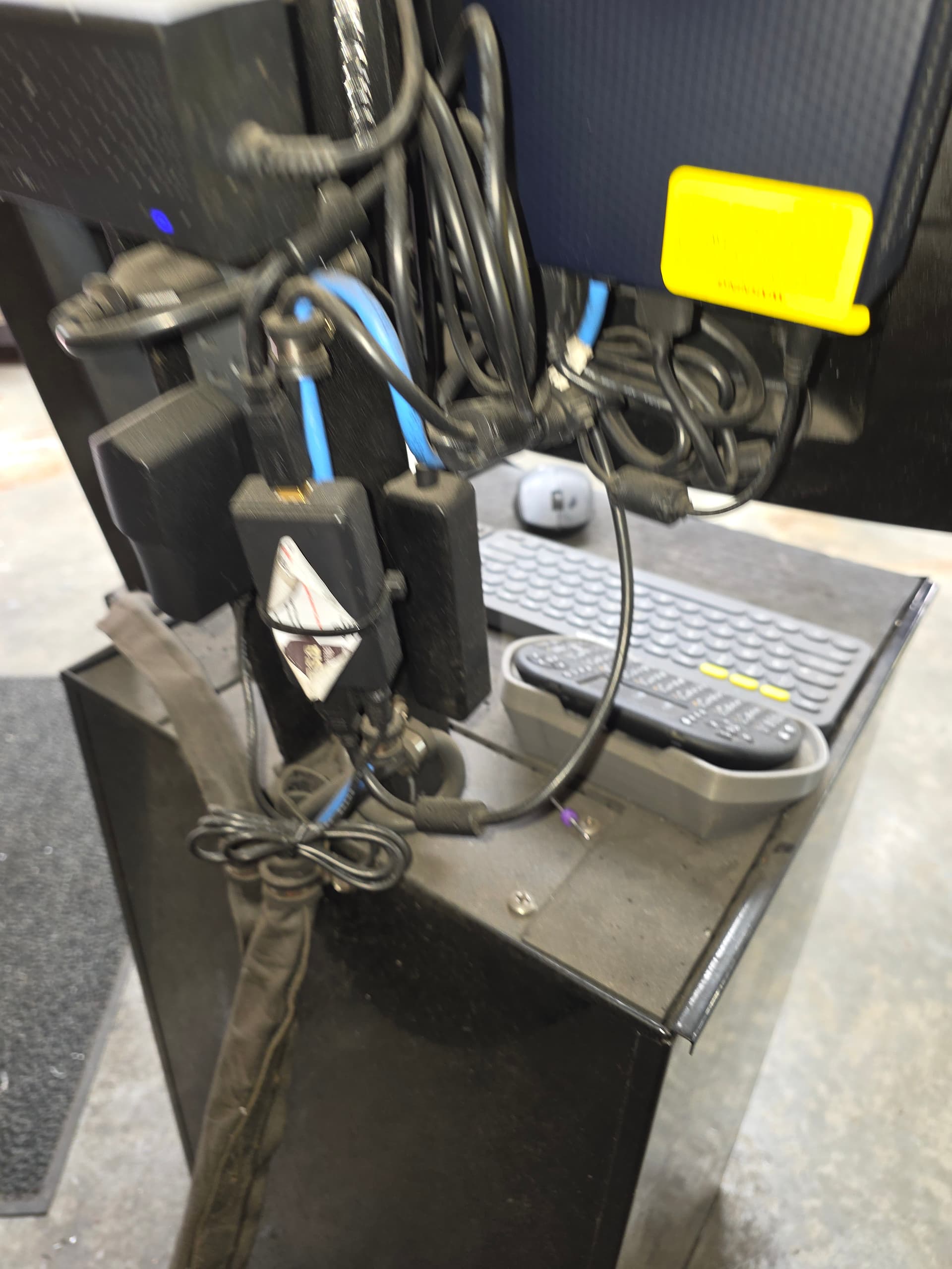 Yes, I built that toolbox with the computer mounted to it. The wires on the back are a power strip mounted to the back of the monitor mount. The other box is a USB isolator. The small item on the side is a USB extension with several additional ports.