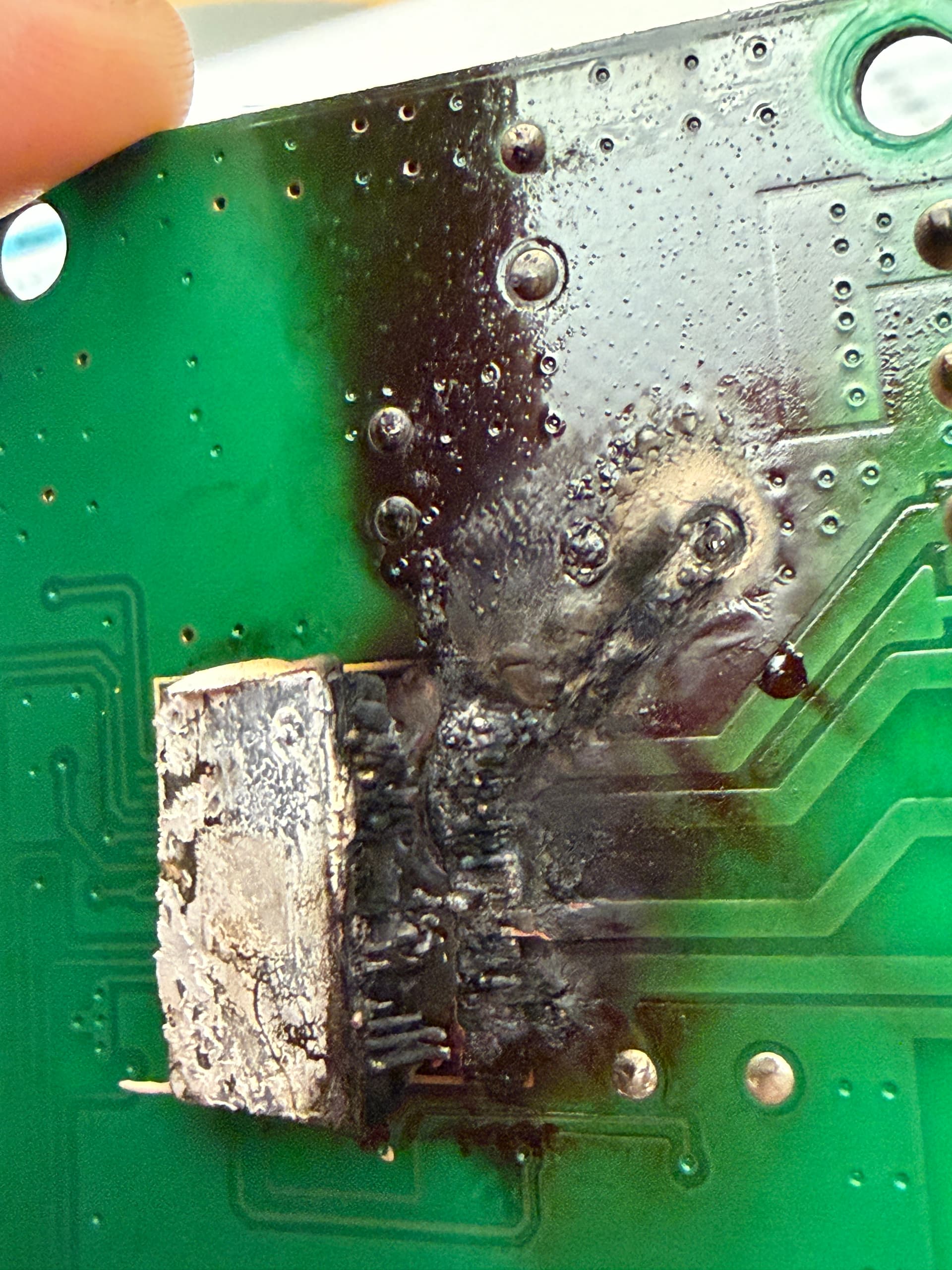 Check the pins where the motor cable connects to the electronics enclosure. Look for burnt pins in the connector that could indicate arcing across the pins.