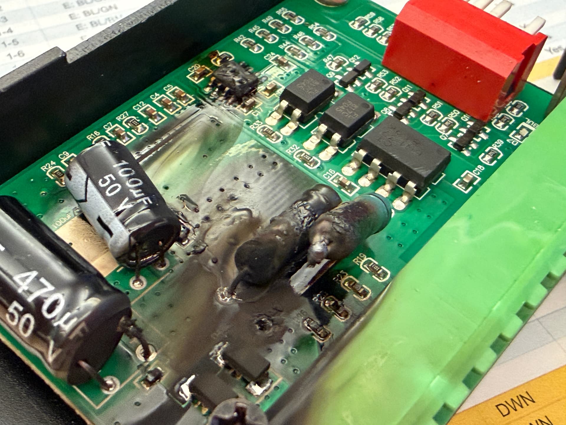 Nothing has changed for the past two years. Been running great. Few days ago driver blew up. replaced driver and went boom again. Inside electronics box looks fairly clean all things considered. Figure my next step is to check power supply, although I would think the other axis would have a problem if the supply was bad. Then check for shorts in the motor cable. Odd it ran manually for a few up/down motions after i replaced the driver the first time.