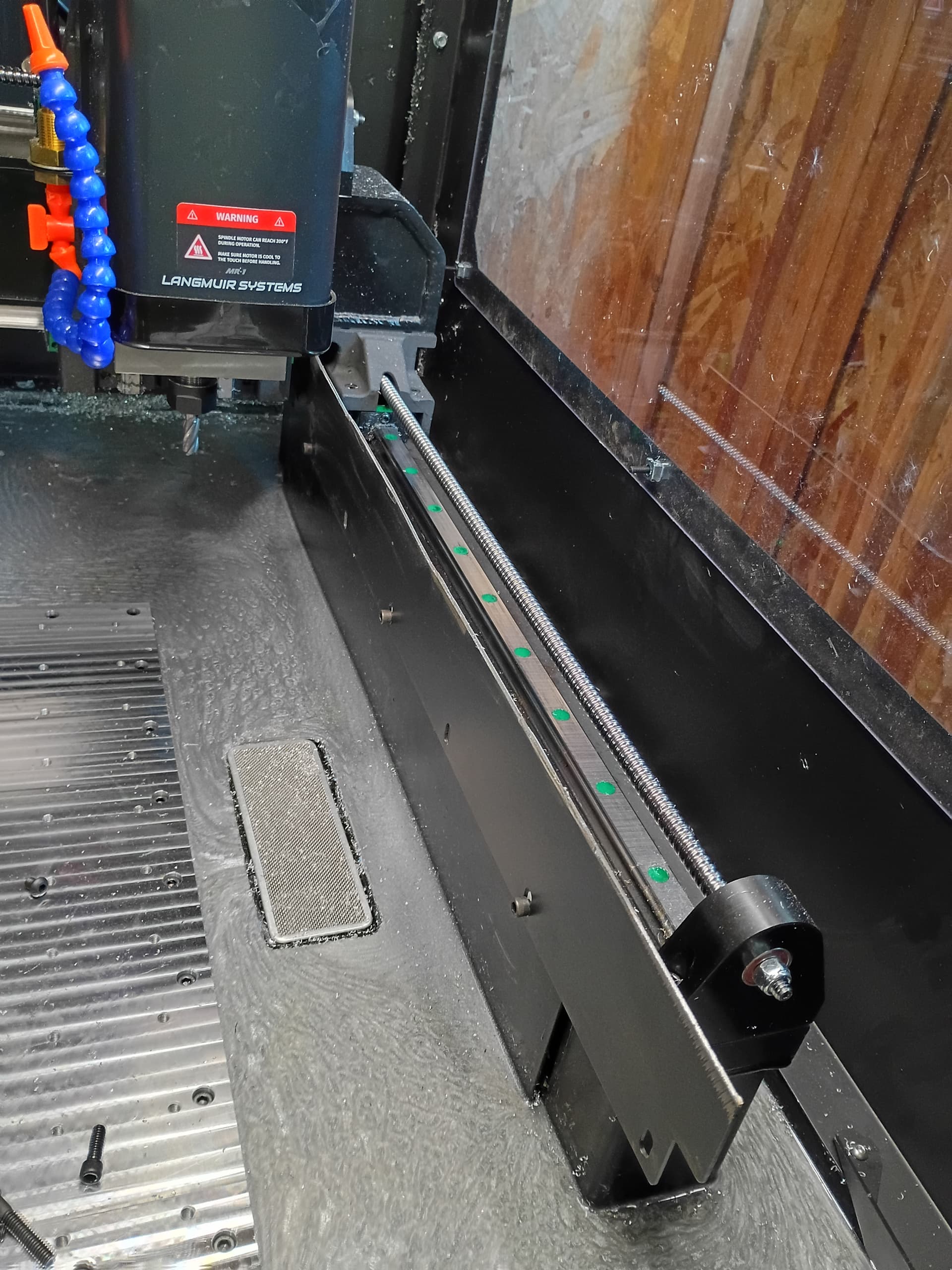 So i this is not my idea but i cant seem to figure out where i saw it. Its not a cover just a shield and covers up the main pathway for chips to fly into the y rail screws. Figured id post it. 1.25 in 1/4-20 bolts with nylon spacers from menards (or your hardware store) with cut down langmuir y axis reinforcement plates.